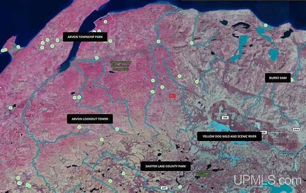 Michigan 40-Acre Wilderness Haven - Nestled in the pristine wilderness of Michigan's Upper Peninsula, this exceptional 40-acre recreational property offers the ultimate escape for outdoor enthusiasts and nature lovers alike. - Located in Arvon Township in northeastern Baraga County, this parcel boasts strategic positioning adjacent to thousands of acres of Corporate CFA land, creating an expansive wilderness playground right outside your property lines. - Imagine owning your slice of Michigan's famed north woods, just five miles from the magnificent Copper Country State Forest and a mere two miles from the East Branch of the Huron River. The Big Huron, flowing majestically through Marquette and Baraga Counties, stands as a Type 1 Fishing Stream and premier steelhead destination. Anglers will delight in the nearby convergence of the East and West Branches at Big Eric's Bridge, with the cold, clear West Branch offering exceptional year-round fishing, particularly for beautiful Brook trout. - Water enthusiasts will marvel at the eight magnificent waterfalls scattered along sections of the Huron River, complemented by four carry-in canoe access points and three historical stream fish stocking sites--perfect for paddling adventures. - The property's strategic location west of the Huron Mountains places it directly in the path of migrating whitetail deer, which frequent the area's old homestead orchards, open fields, and sheltered lowlands. For expanded hunting opportunities, simply step onto the adjoining CFA Forest Lands. - Winter brings its own magic with convenient woods trails connecting to Snowmobile Trail Number 14--the critical northern east-west corridor linking Baraga and Marquette Counties. This strategic location ensures four-season recreational possibilities, from summer hiking and fishing to spectacular fall hunting and winter snowmobiling adventures. - Whether you seek a private hunting-fishing paradise, snowmobiling base, or simply a tranquil wilderness escape, this versatile parcel delivers four-season adventure in one of Michigan's most northern natural settings. Your opportunity to own this recreational gem awaits! - The parcel is enrolled in the Michigan CFA Program. Benefit To the Owner: This Voluntary Program provides a tax incentive to landowners to retain and manage their forestland for long-term timber production and to provide foot access to the public for hunting, trapping and fishing. CF Landowners do not pay ad valorem general property taxes. Instead, CF landowners pay a specific tax. The CF specific rate for 2022-2026 is $1.35 per acre annually. No buildings or improvements (including trailers, motor homes, permanent hunting blinds, utilities) are allowed. If an owner wants to build a structure in this property, the landowner may withdraw it, by submitting an application, application fee, and pay a withdrawal penalty.