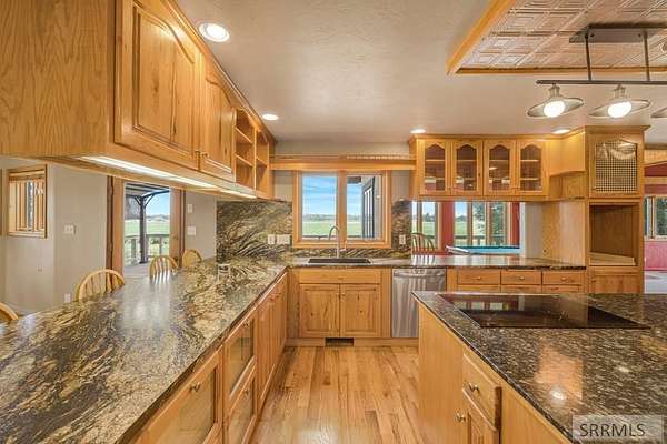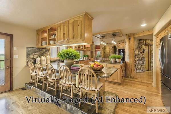Experience the best of Idaho living in this 7,190 sq. ft. custom log cabin retreat on 3.17 acres, where life slows down and nature takes center stage. Panoramic views of the Blackfoot Mountain Range and Snake River Wildlife Habitat surround you, with elk, deer, eagles, and herons as regular visitors. Built in 1993, this home blends rustic charm with modern luxury, featuring massive hand-hewn logs, a soaring two-story river rock fireplace, hardwood floors, and walls of windows that fill the space with light. The gourmet kitchen, with indoor BBQ grill, double ovens wrapped in reclaimed brick, FIFO pantry, and breakfast bar, is perfect for gatherings. The primary suite offers a cultured marble shower, jetted tub, dual vanities, his-and-hers walk-in closets, and a private deck. Seven spacious bedrooms provide comfort for all, while the walk-out basement offers a game area, wet bar, workshop, storage, and flexible living quarters. Outdoors, enjoy two greenhouses, an orchard, berry patch, garden, one-acre pasture, and a 45' x 50' 3-bay shop. With whole-house audio, central vacuum, cold storage, burglary/fire monitoring, and a high-end security camera system, this is more than a home, it's a nature-inspired retreat for family, and friends to gather. Additional Media bit.ly/45wTRCa
