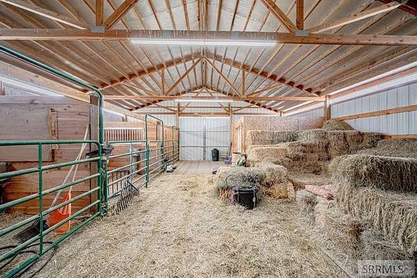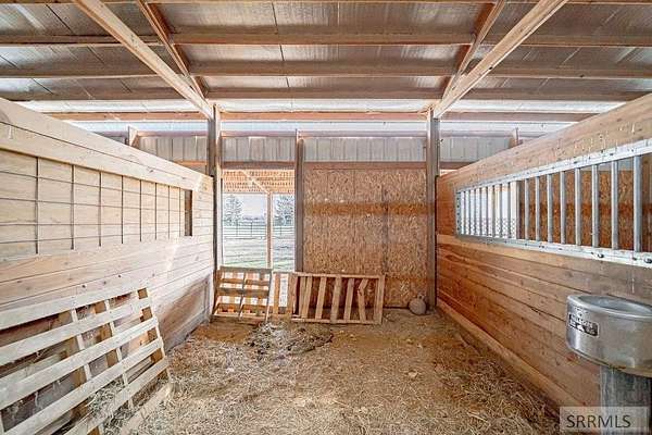 Step into the quiet beauty of Blackfoot w/ this 2.5 acre horse property, perfectly designed for those dreaming of a self-sufficient, homestead lifestyle. From the moment you pull up the drive, the fenced pastures & mature windbreak of trees welcome you home to a place where the pace of life slows down & the views stretch on. Inside the meticulously maintained 4 bed/3 bath home, the open-concept living area features vaulted ceilings & large windows that bathe the space in natural light. The spacious kitchen is a home chef's delight, offering ample oak cabinetry, a wrap-around breakfast bar, & a layout perfect for canning your garden harvest. The basement is set up nicely for a separate living space if desired, & the primary suite above the garage could also be used as a guest' quarters. The heart of the property is the barn & horse facilities, ready for your animals w/ individual stalls & automatic waterers, hay storage, & complete w/ a 12x12 dedicated tack room to keep organized. You'll also find a chicken coop, an enclosed garden area w/ raised beds, fruit trees & berry patches, & reliable ditch irrigation to keep pastures green. Whether you're pitching hay to your horses or watching the sunset from the back deck, this property offers rural peace & functional living combined!