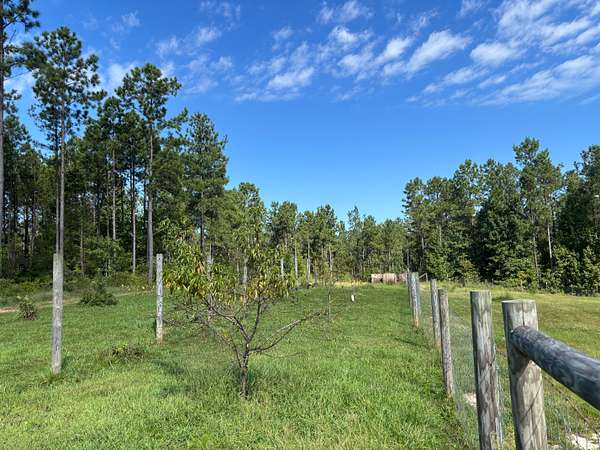The property itself is rich with amenities and natural beauty: a 2-acre fishing pond, bold creek frontage, open fields, a gated pasture for horses or other livestock potential, old planted pine stands, and mature hardwood bottomland, providing abundant wildlife habitat. Multiple storage buildings, garden space, an orchard, and areas suitable for chickens or goats provide a true homestead feel. A secondary modular home with appliances is move-in ready, perfect for guests or rental income. Paved state road frontage ensures easy access while maintaining privacy.