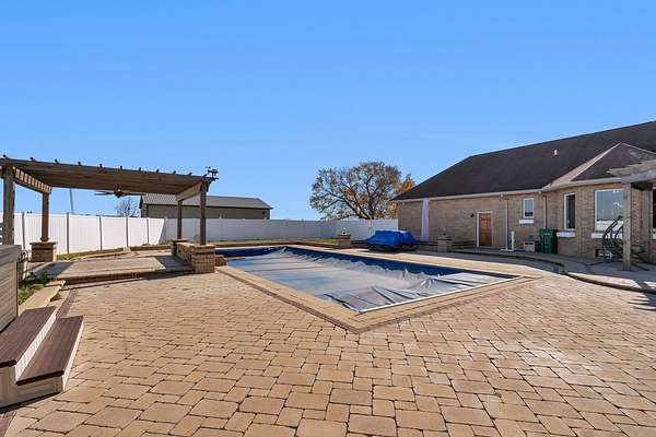 WELCOME HOME! Get ready to spend the summer in your own BACKYARD OASIS that sits on 2.48 acres! From the moment you walk in, you fall in love with this freshly painted custom built 5 bed 3 bath ranch. SO MANY UPDATES! 2026 All NEW exterior doors(Patio Doors, Front Door & Garage Service Door), 2024 completely remodeled basement including 2 bedrooms, office, exercise room & family room. 2025 Pool Pump, 2024 landscaping, tar & chip circle driveway, generator, septic pump out, 2023 Furnace, AC, water filtration system, window treatments including planation shutters. 3 car heated attached garage & a NEW 2023 32x48 Insulated heated pole building with 12x12 overhead door, concrete floor, 14 foot ceilings, separate heated 10x20 workshop & 30x30 concrete apron. This amazing OPEN CONCEPT home offers so much! Remodeled kitchen with quartz countertops which overlooks your sunken living room with beautiful fireplace. Primary bedroom with gorgeous ensuite, concrete soaking tub and oversized an unbelievable walk-in shower with several shower heads & custom walk-in closet. The other 2 main floor bedrooms offer custom closets & share a beautiful bathroom with oversized full body spray in marble tile shower. Backyard oasis with uni-lock paver patio, outdoor kitchen, bar including large screen tv, in-ground saltwater pool with a waterfall, auto cover & sand filter, hot tub, fire pit & gazebo. Perfect for entertaining & those family get togethers. A MUST SEE! Call for your showing today! Easy access to I-55. TOTAL LIST OF UPDATES UNDER ADDITIONAL INFO.