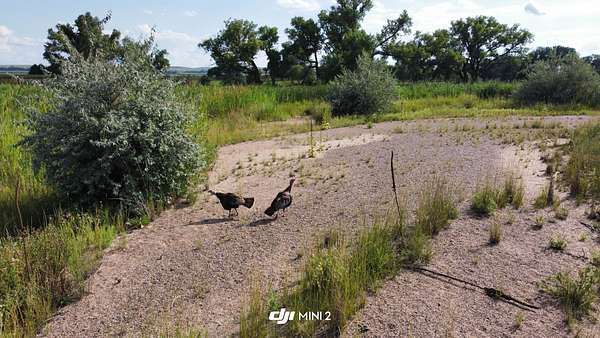 Beyond waterfowl, the property holds good numbers of whitetail deer, with thick cedar and Russian olive cover offering ideal bedding and travel corridors. Winding river-bottom trails make for excellent stand sites. Wild turkeys are commonly seen strutting along the riverbanks and feeding out in the open fields every spring.