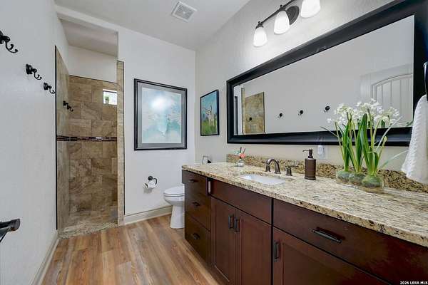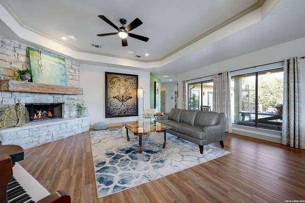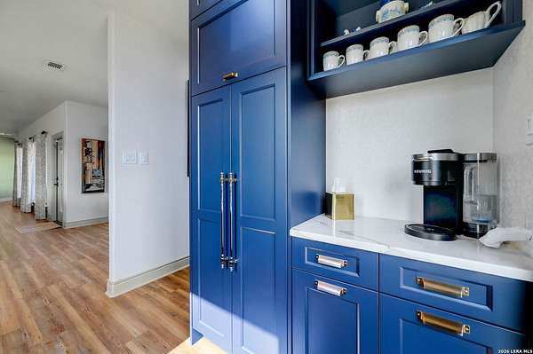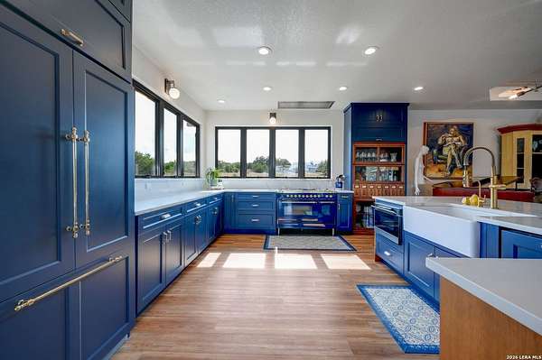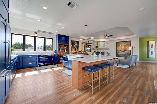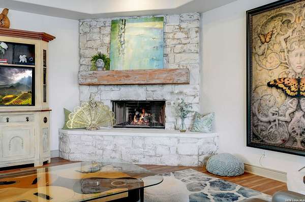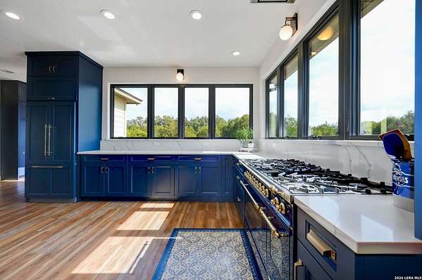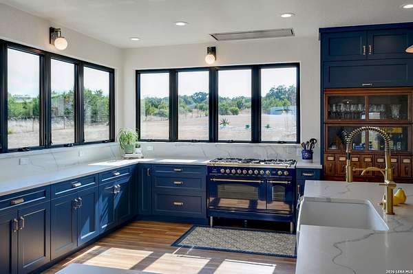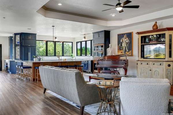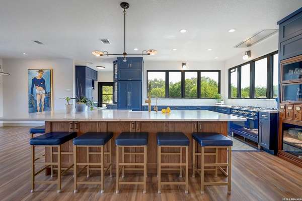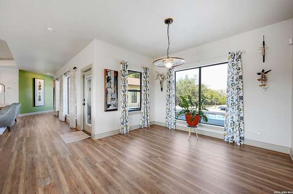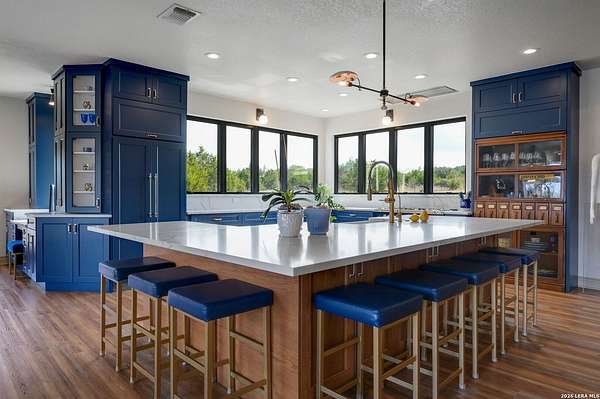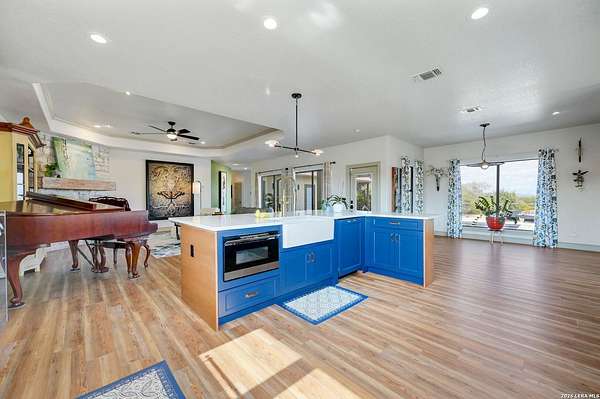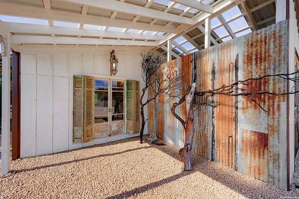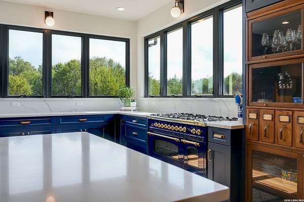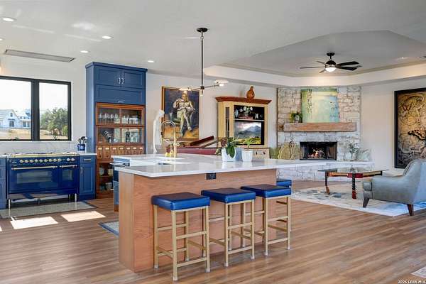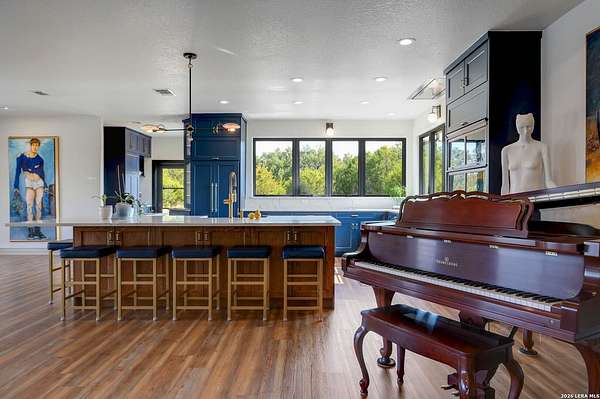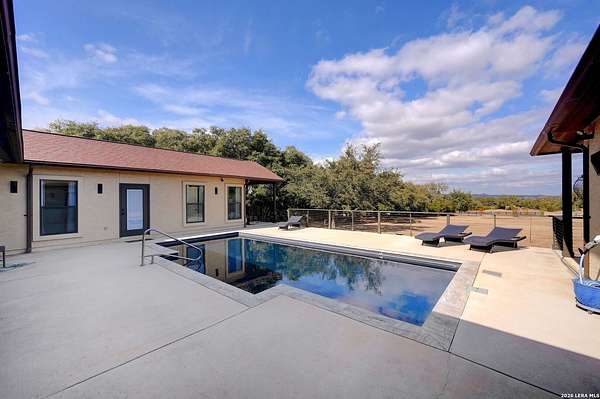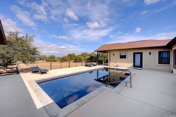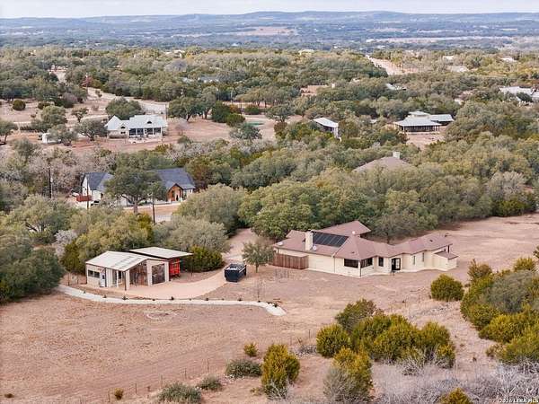 Hill Country Living At It's Finest On 4 Private Acres Nestled Away In Desirable Cielo Springs with Beautiful Hill Country Views and Unmatched Tranquility! This Stunning 3 Bedroom 2 Bath Home with 2 Car Garage, Art Studio and Extra Carport with Freshwater Gunite Pool Offers a Split Floor Plan Tucked Away On a Quiet Cul-De-Sac With Private Entrance! With A Light-Filled Interior Showcasing Designer Finishes Including a White Washed Fireplace and Custom Build Mantle, Gallery-Style Art Lighting and Expansive Thermal Casement Crank Open Kitchen Windows That Flood The Home With Natural Light! The Custom Kitchen Anchored With A Massive Island and Seating for Eight with Extra Storage, Pull Out Shelving, Soft Close Drawers, ILVE 8 Burner Blue Enamel Stove with Rotisserie & Overtop Grill, Built in Bosch Dishwasher, Built-In Fisher and Paykel Refrigerator, Apron Front Fire Clay 32x18 Kitchen Sink, Antique Built-In Cabinet and Spice Rack Along With A Dedicated Office and Coffee Bar/Pantry Area Just Off the Kitchen! The Primary Suite includes a Fully Renovated Bathroom with Upgraded Fixtures and Finishes, Custom Cabinetry, and Built-In Vanity and Large Walk-In Closet, Guest Room with Custom Built-Ins and Ample Storage. Enter the Home To A Custom Art Niche with Wooden Arch Salvaged from a Bank During the 1900 Galveston Hurricane. Step Outside To Enjoy Serene Hill Country Views From the Freshwater Backyard Pool Surrounded By Mature Oak Trees. The Art Studio/Workshop Awaits Your Creative Vision and Adds Exceptional Character Featuring Imported Antique French Doors, French Plaster Details Sputnik Lighting, and Connection to a RainWater System. The Property Backs Up to a Large Acreage Pasture, Offering Exceptional Privacy and Peaceful Surroundings in one of Blanco's Most Sought After Neighborhoods just 5 minutes from the Glistening Blanco River and 30 minutes from Fredericksburg's Wine Country.