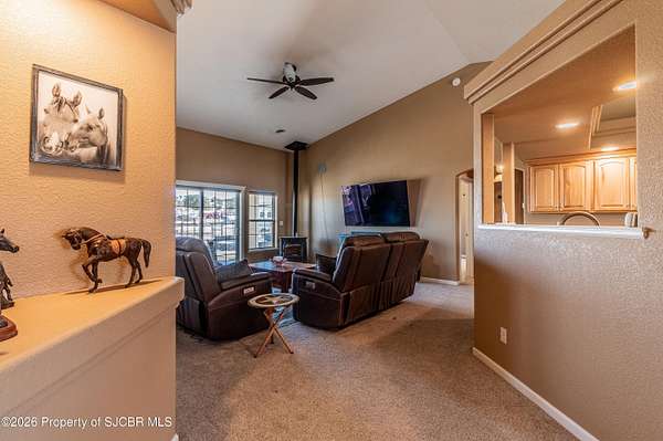 - CTH/Vlt Ceilings, Ceiling Fan(s), Garage Door Opener, Pellet Stove