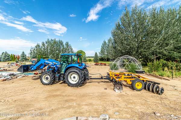 Partially finished barn-dominium on this rare 45-acre offering comes with 31.65 acre-feet of Class A irrigation rights and includes all irrigation equipment--an ideal setup for farming, ranching, or developing into your dream homestead. The property features multiple well-equipped outbuildings: 50' x 75' Metal Building - Fully insulated with concrete flooring, electricity, plumbing, septic, water heater, and washer/dryer hookups. Heated and ready to be finished into a residence, this structure is also structurally certified for solar panels. 30' x 40' Metal Building - Concrete flooring, insulation, and electricity--perfect for storage, a workshop, or additional farm use. 60' x 40' Hay Barn - Designed for large-scale storage and functionality. The land boasts an impressive variety of established trees and plants, including 5 apple trees, 3 plum trees, 2 pecan trees, 8 hazelnut bushes, 7 grape varieties, honey berries, cherries, and more, offering both beauty and agricultural opportunity. Farm equipment--John Deere tractor and all implements--may be negotiated with an acceptable offer, making this an excellent turn-key agricultural property. With its versatile infrastructure, rich irrigation rights, and abundant plantings, this property is a rare find with endless potential for farming, ranching, or creating your own estate.