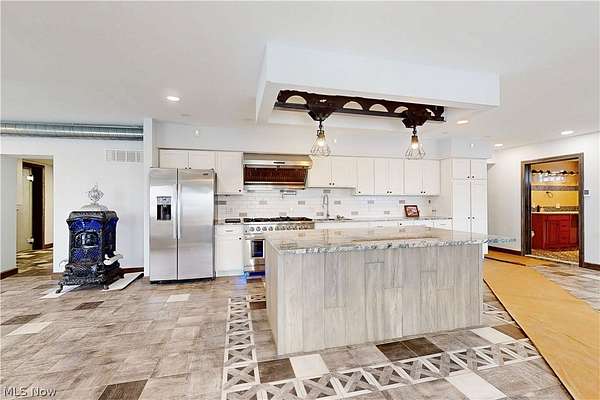 Welcome to this expansive 4,000 sq ft home nestled on 3.05 private acres, offering beautifully updated interiors and flexible dual living spaces ideal for multi-generational living or extended guests. A brand new metal roof was recently installed, adding to the curb appeal. The main level features 3 spacious bedrooms and 2 full bathrooms, heated flooring throughout, along with a generous open-concept layout that includes a large kitchen, dining area, and rec room. The main kitchen has been fully updated with custom cabinetry, granite countertops, and a high-end commercial gas stove, walk-in commercial cooler making it a true centerpiece for entertaining and everyday living. A first-floor laundry adds convenience, while the sunroom provides a peaceful spot to relax and enjoy views of the surrounding property. Upstairs offers a full second living area, complete with its own kitchen, full bathroom, dining room, and a vaulted-ceiling living room. All new flooring has been installed upstairs, as well as the new additional of a on suite bathroom. Walk-out access leads to a private covered terrace, creating a perfect retreat or guest suite. Both full bathrooms have been tastefully updated with modern finishes. The property also includes a second parcel equipped with its own septic system, offering additional value and future flexibility. This unique home delivers space, style, and versatility in a tranquil, private setting.