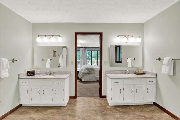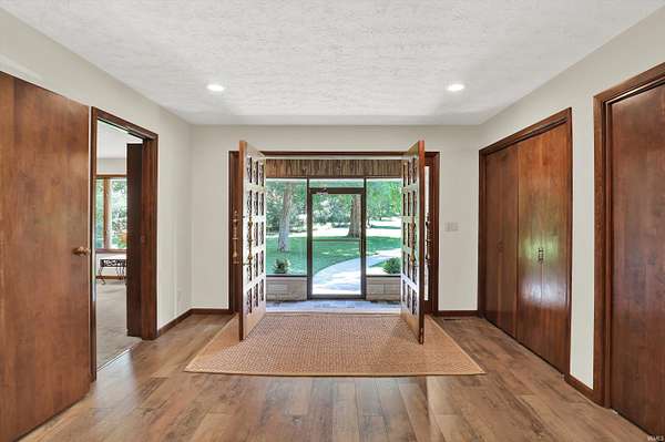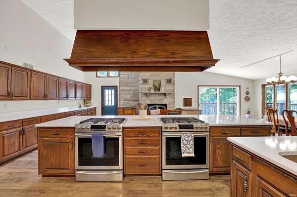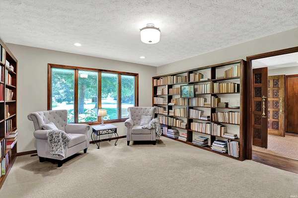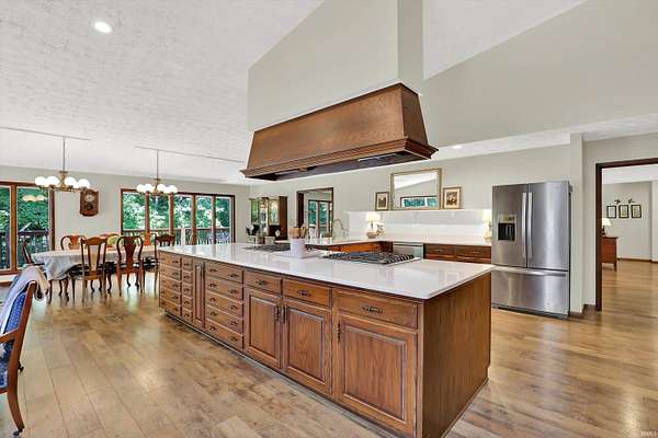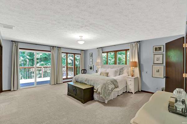 Nestled on approximately 75 acres just minutes from Bloomington, Bedford, and Lake Monroe, this impressive 6,000-square-foot residence offers both privacy and convenience. The home features 6 spacious bedrooms and 4.5 baths, including a stunning great room with soaring cathedral ceilings and a cozy wood-burning fireplace. The well-appointed kitchen with custom cabinetry throughout and new quartz counters & appliances. Designed to accommodate gatherings large or small, the home includes two additional fireplaces, two libraries, abundant storage, and a relaxing sauna. Multiple patio doors provide easy access to the expansive wrap-around deck, which overlooks serene woodlands, as well as a covered patio on the lower level--perfect for entertaining or simply enjoying the view. An attached greenhouse offers year-round gardening convenience. The property itself is a blend of open fields and mature woods, with a picturesque pond nearby. A 40' x 80' pole building adds valuable space for hobbies, storage, or equipment. Set well back from the road along a long driveway, the home enjoys exceptional privacy. The home is equipped with high speed internet. With endless possibilities, this unique property is truly a must-see!