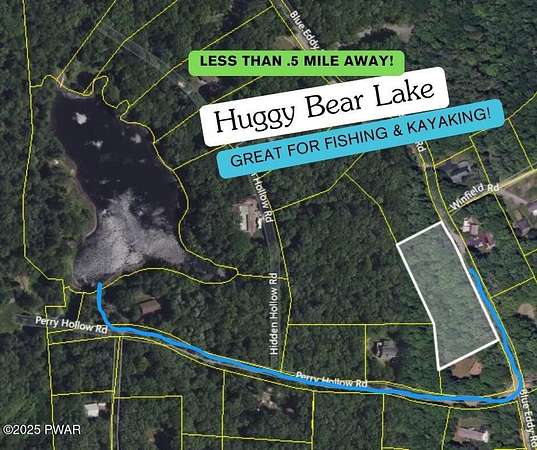This 2.34-acre lot offers wooded privacy on a quiet township road, an ideal spot for your primary residence or vacation home. With deeded lake rights to Huggy Bear Lake, you'll enjoy canoeing, kayaking, fishing, and picnicking less than a half mile from your property. The location is private with no community, yet close to everything: Woodloch's golf and spa facilities, Ski Big Bear, Three Hammers Winery, the Delaware and Lackawaxen Rivers, and the historic town of Hawley with shops, restaurants, and Lake Wallenpaupack, the largest motorboat lake in the Pocono Mountains. Low taxes and a commutable distance from New York City and other metro areas make this lot an excellent choice whether you're planning a cabin, chalet, retirement retreat, or a future build. Although there is no formal HOA, there are deed restrictions, including no commercial use or mobile homes.