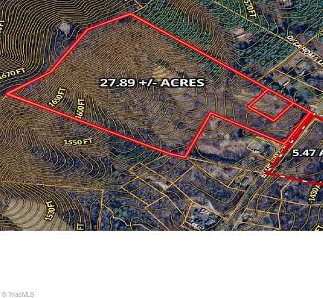 Est $2,230/moThis unique opportunity to purchase 33.36 Acres +/- on two sides of the Road. One side ascends to the peak of Slate Mountain, offering a distant view of Pilot Mountain, which spans approximately 27.89 acres. The other side is approximately 5.47 acres in size, crossed by a bold stream. NO RESTRICTIONS. MLS #1176147 and MLS #1176121
