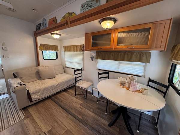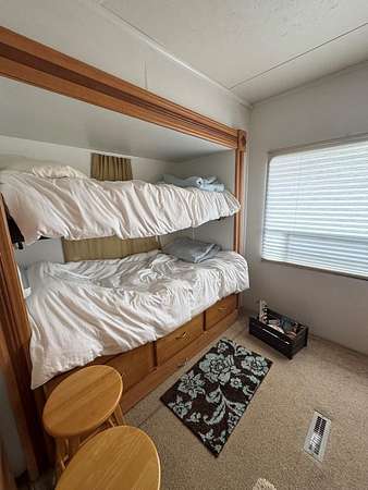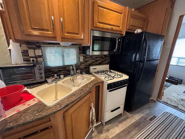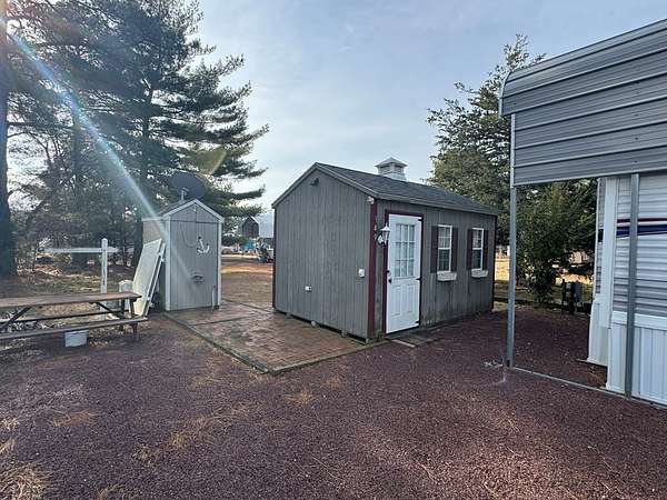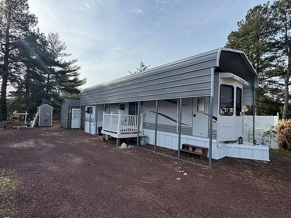 Est $832/moCleared lot with stone down. Two bedroom one bathroom park trailer. Living Area is open with newer flooring. Camperport over trailer keeps electric bills down and rain off the trailer. Two outbuildings on site. Includes access to pool, dock, fishing pier, crabbing pier, marina, clubhouse, boat ramp, boat slips, playground, pavilion, and more.