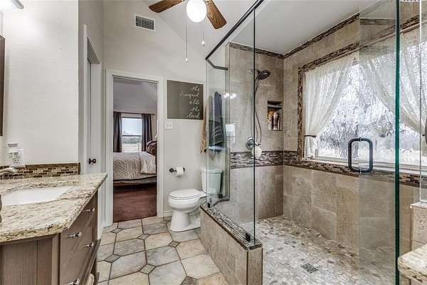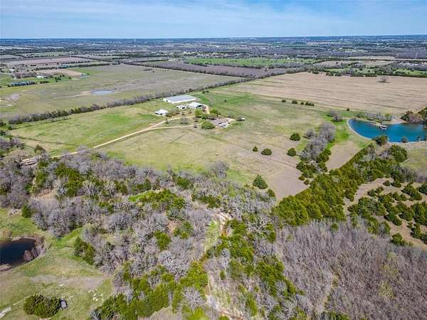 Ideally located in Blue Ridge, Texas, just outside the Dallas-Fort Worth Metroplex, this exceptional 17+ acre ranch offers the perfect balance of privacy, space, and accessibility. Positioned in one of Collin County's most desirable acreage corridors, you'll enjoy peaceful country living while remaining a short drive to McKinney, major highways, and the conveniences of the greater DFW area. Set well off the road with sweeping countryside views, this completely private custom-built brick home captures breathtaking sunrises and sunsets across open pastureland. The residence features four spacious bedrooms and three full baths, with a warm and inviting living room highlighted by wood paneling and a cozy fireplace. The expansive kitchen and dining area provide ample space for entertaining, while the primary suite offers a relaxing retreat with an en-suite bath and walk-in shower. Outdoor living is thoughtfully designed for both relaxation and recreation. Enjoy a resort-style pool and spa with water feature, gazebo, and open patio -- all positioned to take full advantage of the serene landscape. An outdoor riding pad and private on-property trails enhance the ranch lifestyle appeal. For buyers seeking a larger footprint or expanded equestrian capability, additional acreage, barn facilities, and a covered riding arena are also available, creating the opportunity to build a more substantial ranch estate or training operation. With continued growth expanding north of the Dallas Metroplex, properties offering this combination of location, privacy, and expansion potential are increasingly rare. Whether you envision a private family ranch, equestrian retreat, or long-term land investment, this Blue Ridge property delivers flexibility and lasting value.