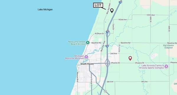 I-196 S/US-31 S to North Shore Dr. (Exit 22). Take Roundabout to Blue Star Highway North. Property is on the East side of the road, at the entrance of Blue Star Pottery. Enter driveway and continue east to parcel.