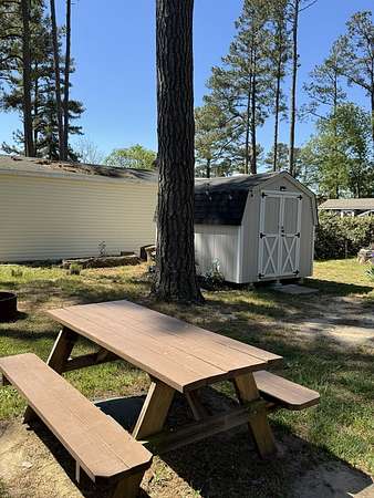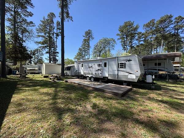 Est $488/moCleared lot with newer septic, camper, ground deck and newer shed. Camper is in great shape with two bedrooms, bathroom, and open living space. Golf cart included as well. Includes access to pool, dock, fishing pier, crabbing pier, marina, clubhouse, boat ramp, boat slips, pavilion, playground, pickleball court, and more.