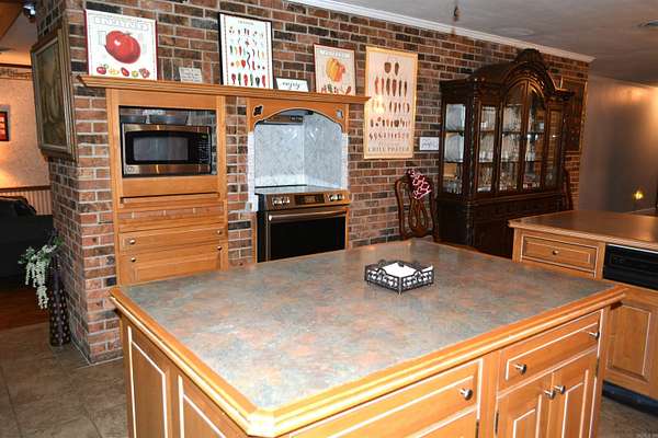 Welcome to country living at its finest! Situated on 5 beautiful acres, this 3-bedroom, 2-bath traditional home with a 2-car garage, laundry room, and large sunroom offers 2,900 square feet of comfortable living with the perfect blend of privacy and convenience. Inside, you'll find an upgraded kitchen featuring beautiful cabinetry, a center island, separate eat-in bar, and pantry, ideal for everyday living and entertaining. Luxury laminate flooring and wood-look tile flow throughout the home. The spacious family room showcases stunning ceiling beams and a cozy wood-burning fireplace. Outdoors, enjoy mature trees including pecan, walnut, pin oak, and pine, creating a serene setting. A 30x80 insulated metal shop with heating and air conditioning is a rare and valuable feature, ideal for hobbyists, business use, or additional storage. Located on a paved road, this property provides the perfect balance of rural privacy and accessibility, just minutes from shopping, city conveniences, and major employment centers. This is more than a home--it's a lifestyle! Qualifies for Work Here, Live Here program in Mississippi County, Arkansas.