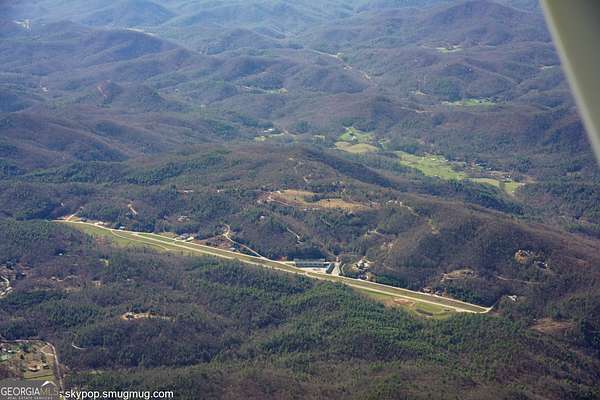 From Clayton, US 76 West to R on Germany Road (Mountain Lakes Medical Center Hospital is on the corner) follow Germany Road approx 4 miles then left at intersection onto Devil's Branch. Then R onto Little Creek (Heaven's Landing). Follow along taxiway to hangars, proceed through hangar complex with caution and trun left on Bob Hoover Drive. At fork, the shared driveway into the lot is straight ahead.