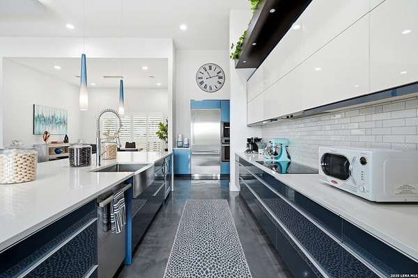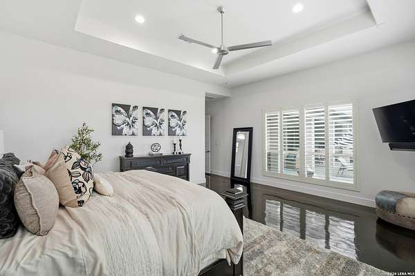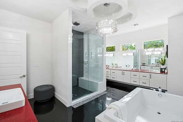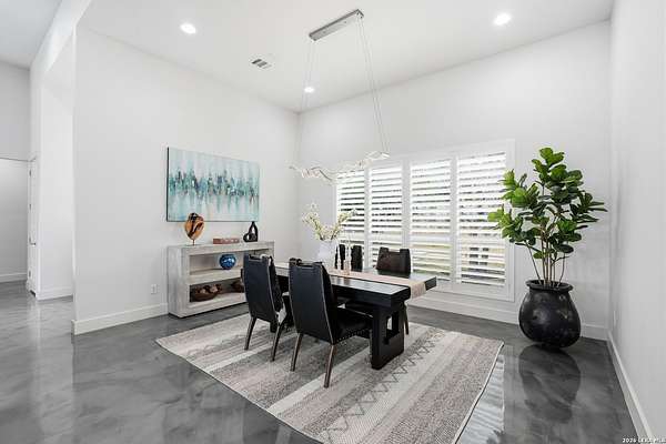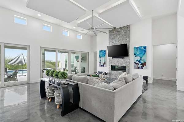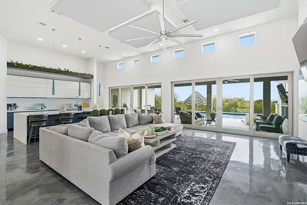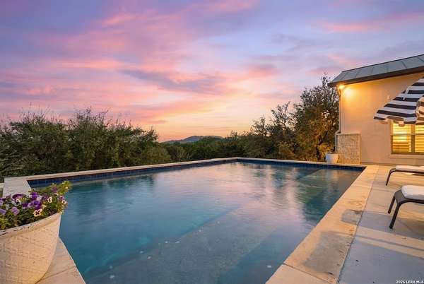Rare find contemporary home in Anaqua with breathtaking Hill Country views. An exceptional value! This stunning residence features an open floor plan with soaring high ceilings, filled with natural light and designed for effortless living and entertaining. Floor-to-ceiling windows bring the Hill Country indoors with panoramic views and stunning sunset backdrops. The kitchen flows seamlessly into spacious living and dining areas with modern finishes and elegant design throughout, complemented by custom window coverings throughout the home that add both style and privacy. The private primary suite offers a spa-inspired bath and serene views, creating a true retreat. Flexible secondary spaces provide options for guests, office, or media/game room. Located in the prestigious 24/7 guard gated community of Anaqua Springs Ranch, just minutes from Boerne and San Antonio. A rare opportunity to own a contemporary Hill Country masterpiece. Schedule your private showing today!