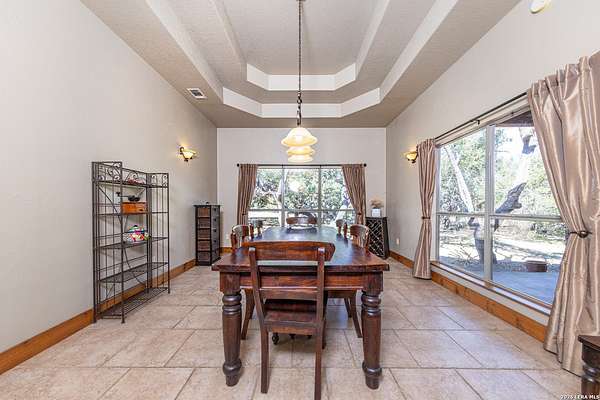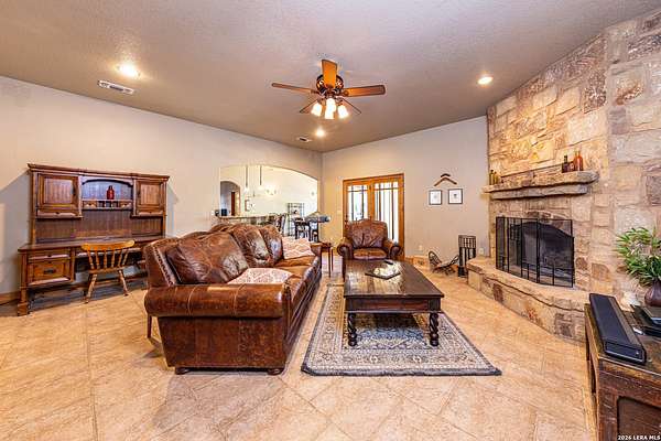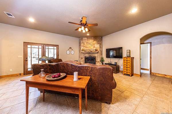 Experience the best of Hill Country Living on nearly 7 Acres in Boerne! Welcome to a rare opportunity to own a beautifully crafted custom Covenant home nestled among mature oaks in the sought-after Meadow Springs Estates community. Set on nearly seven private acres, this 5-bedroom, 3.5-bath residence captures the essence of hill country living, where wide open space, thoughtful design, and everyday convenience come together. From the moment you arrive, the home's rich stone frontage and expansive front patio welcome you with a warm and comfortable space perfect for your morning coffee, wildlife watching, or unwinding beneath the stars. Inside, the living spaces highlight custom architectural details that include elegant archways, tray and step ceilings, and a floor-to-ceiling stone fireplace that anchors the heart of the home. The striking chef's kitchen is designed for both connection and functionality, featuring rich wood cabinetry, granite countertops, a stone backsplash, stainless steel appliances including double ovens, a large island, and a custom glass pantry door that blends beauty with smart storage. The spacious first floor primary suite offers a private retreat, thoughtfully separated from the other bedrooms, with plush carpet, two large walk-in closets, and a beautiful oversized walk-in shower with custom stone finishes as well as a jetted tub and plenty of counter space with dual sinks. With three bedrooms on the main level, including a secondary suite with a full bathroom and a jetted tub, this home provides added flexibility for multigenerational living, guests, or work-from-home needs. Upstairs, enjoy a large game room/loft, two additional bedrooms with reading nooks, and another full bathroom to help create the perfect space for play, hobbies, or additional living quarters. Designed for comfort and practicality, the home also includes a massive laundry room with custom cabinets and an additional refrigerator hookup for further convenience. Other notable features include a central vacuum system, walk-in attic storage, water softener, fiber connectivity for fast internet, and a high-efficiency Trane HVAC system that has been meticulously serviced biannually. Back outside, the property truly shines. The level, ranch-style acreage offers privacy with no visible neighbors, abundant wildlife, a partitioned garden space, and room for horses or other animals. Due to the acreage size, it also offers future potential for agricultural or wildlife tax exemptions, if desired. Additional recent improvements include an updated well-house with large concrete storage tanks and a booster pump, full exterior home repaint (2024), and driveway, culvert & parking space improvements to enhance functionality and peace of mind. Enjoy the feeling of being tucked away in nature while still being less than 15 minutes from H-E-B, home improvement stores, dining, and everyday essentials, with easy access to Highway 46 for convenient travel to San Antonio, New Braunfels, Fredericksburg, or even Austin. Located within the highly regarded Boerne ISD, this property offers space to grow, flexibility for the future, and a lifestyle that feels both peaceful and connected.