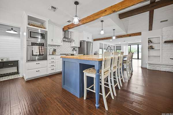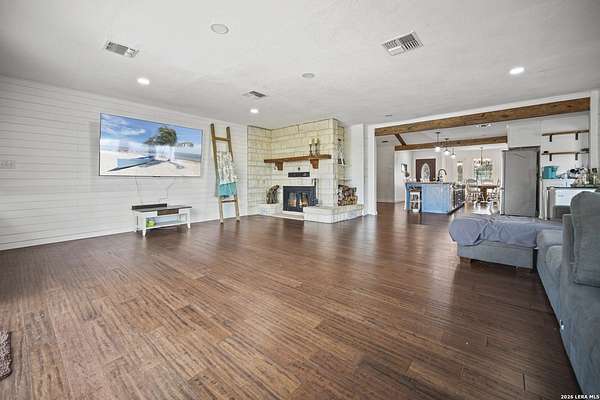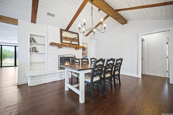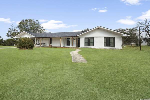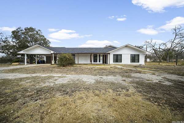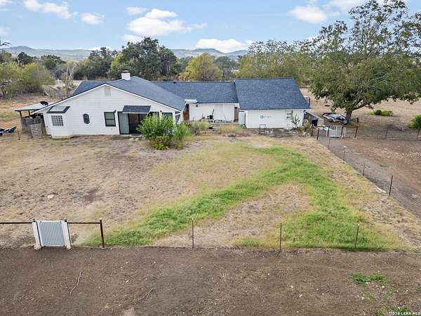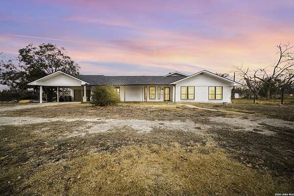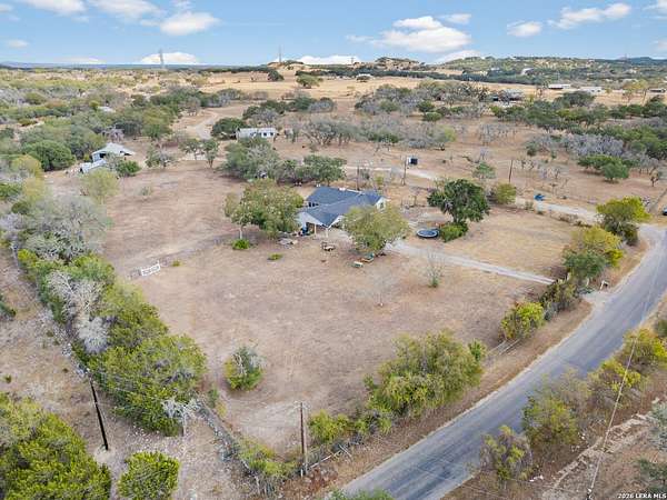 Nestled amidst the scenic Texas Hill Country, this home is a harmonious blend of farmhouse charm and a Hill Country dream. Capturing the classic Texas aesthetic, with rich wood beams, and new large windows invite natural light and countryside views into every corner. The 13 foot wide sliding doors will bring the outside in so you can enjoy the beautiful Texas Hill Country days or sit on the large front porch to enjoy the nights. This 4 bedroom 3 full bath home is on 3 UNRESTRICTED fully gated acres. It also has a spacious living room, office, walk in pantry and double fireplace. Home has been renovated to its finest with a new roof, hardwood flooring, and new carpet in 2 bedrooms. There is room for a future pool or grow your own private enclosed garden next to the large 2 car garage with attached carport. Just a short 15 minute drive to Boerne's historic Main Street, this home offers a quiet lifestyle without sacrificing easy access to shopping, dining, and vibrant local culture.. Horses are welcome, with no HOA! *Outdoor swing does not convey & some photo's are virtually enhanced.