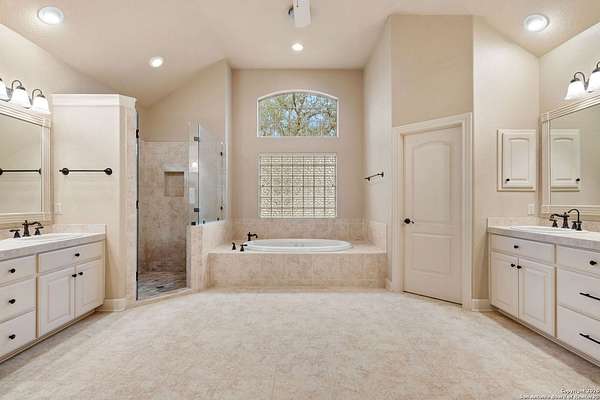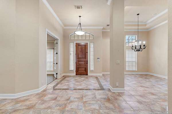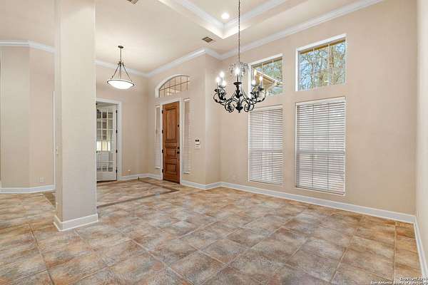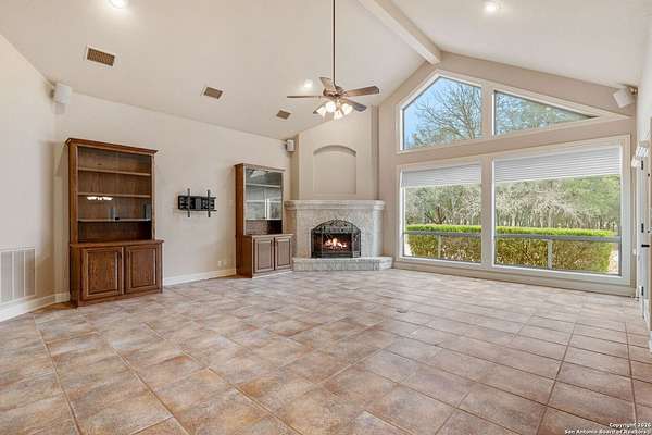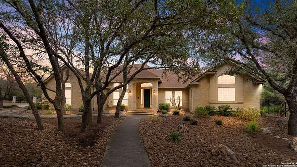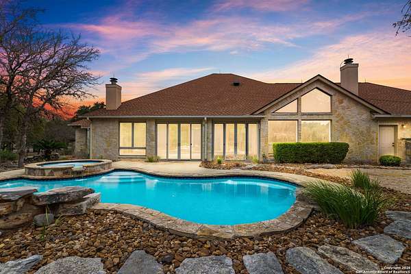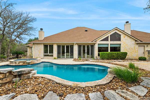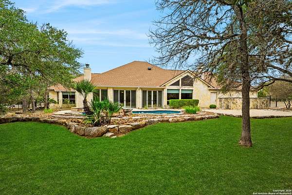 Stunning 3-bedroom, 2.5-bath home with a 3-car side-entry garage located in the desirable Fair Oaks Ranch community and zoned to Boerne ISD. Offering 4,111 sq ft of thoughtfully designed living space, this home features a grand entry, abundant natural light, and multiple living and dining areas ideal for both everyday living and entertaining. The island kitchen is well-appointed with built-in appliances and ample cabinetry, opening seamlessly to the main living space. A private study with wood flooring and custom built-ins provides the perfect work-from-home retreat. The spacious primary suite includes a spa-like bath with dual vanities, a separate soaking tub and walk-in shower. Indoor-outdoor living shines with an enclosed patio featuring a fireplace and sliding glass doors leading to a beautiful in-ground pool and spa, all surrounded by mature trees for privacy and serenity. Conveniently located near shopping, dining, and major roadways, this exceptional home offers comfort, space, and elegance in one of Fair Oaks Ranch's most established neighborhoods. Welcome home!