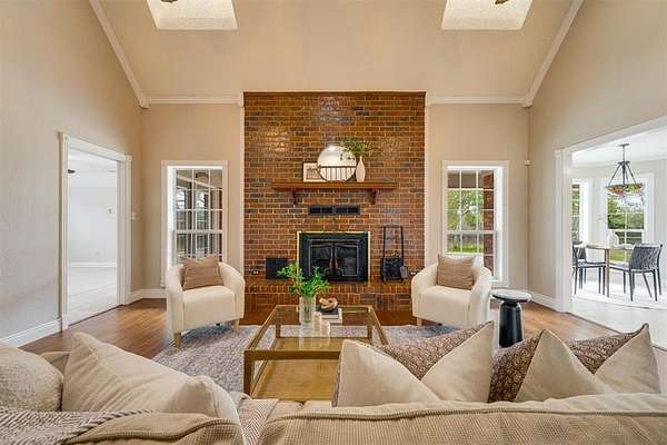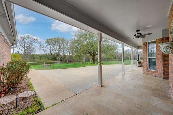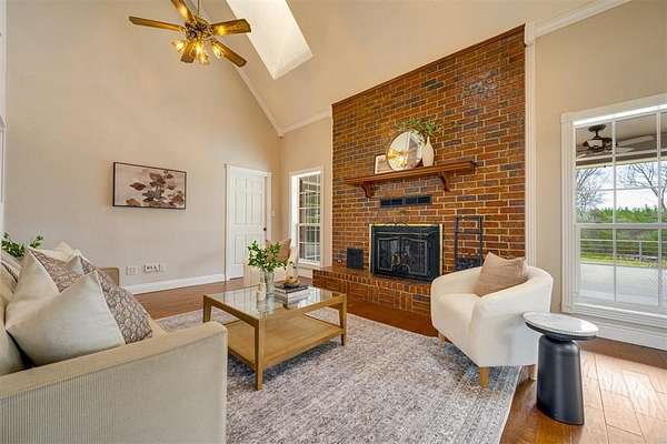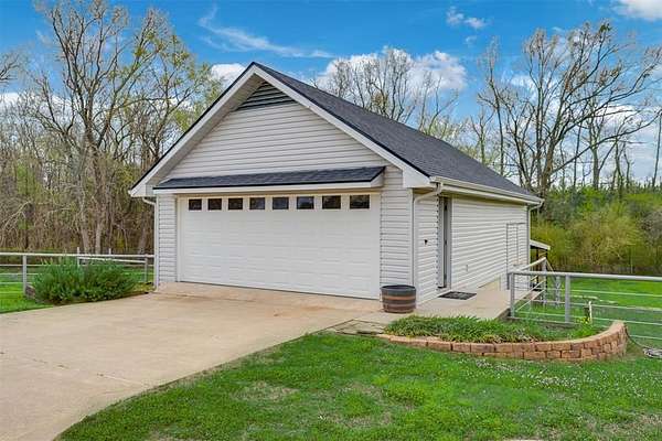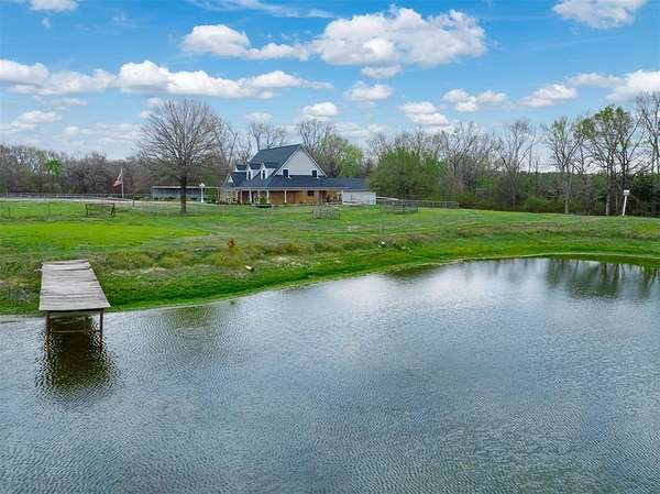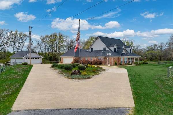 Tucked away on over 13 beautiful acres in Red River County within Rivercrest ISD, this inviting country property offers privacy, scenic views, and functionality. Set well back from the road, a private drive leads to a circular driveway with landscaped island, creating a welcoming entrance and convenient guest parking. The classic brick home features excellent curb appeal with a steep pitched roofline, dormer windows, and covered front and back porches perfect for enjoying peaceful country mornings and sunsets. Inside, the spacious living room features vaulted ceilings that create an open, airy atmosphere ideal for gathering with family and friends. The layout includes three bedrooms and two and a half baths, along with a versatile downstairs flex room that could easily serve as a fourth bedroom, home office, or second living area. The primary suite is located downstairs and includes an ensuite bath with soaking tub and separate shower. Bedrooms up share a Jack and Jill bath and feature charming attic hideaway spaces ideal for playrooms, reading nooks, or study areas. The kitchen opens to a breakfast nook overlooking the water, creating the perfect spot to enjoy morning coffee while watching wildlife around the property. Outdoor living is a highlight of the property, featuring a beautiful one-acre stocked pond just steps from the home . A fire pit near the pond provides a relaxing setting for evenings. The land offers a mix of open pasture and trees, with approximately 10 acres of usable pasture suitable for horses, livestock, or recreational use. Additional improvements are a two-car attached garage, detached garage, and shop providing ample space for equipment or storage. Established landscaping, irrigated yard areas, fencing, and a dedicated garden area with its own water well further enhance the function of the property. This rare offering combines country charm, a stocked fishing pond, usable acreage, and a beautifully maintained home in Rivercrest ISD.