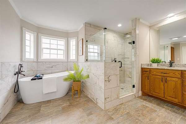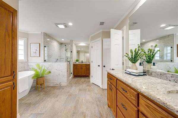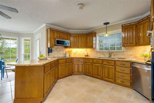 - Cathedral Ceiling(s), Chandelier, Decorative Lighting, Double Vanity, Eat-In Kitchen, Granite Counters