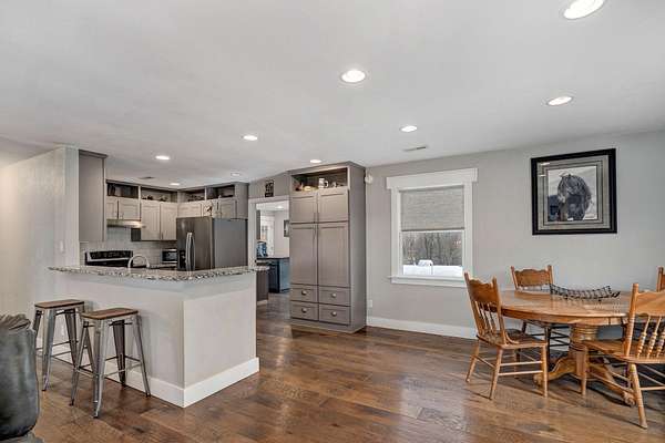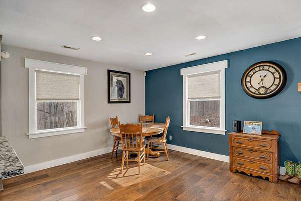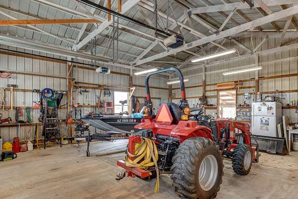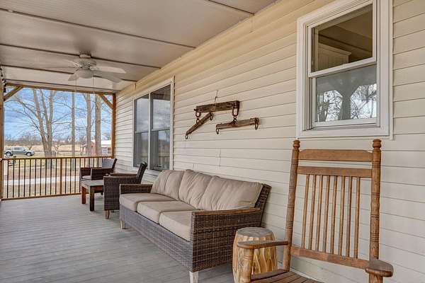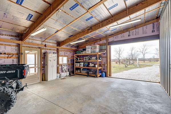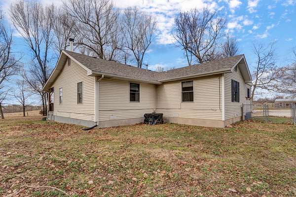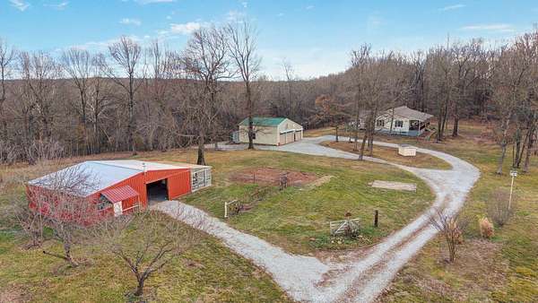 Take a look at this hard-to-find homestead and hobby farm on 11.8 +/- acres, conveniently located just minutes from Springfield and an easy 30-minute drive to Joplin.The home welcomes you with a 48x8 covered front porch with ceiling fans, the perfect spot to enjoy breathtaking sunsets or entertain family and friends. Inside, you'll find an open-concept living area featuring wide-plank engineered hardwood flooring, recessed can lighting, and a wood-burning stove that adds both warmth and charm.The spacious dining area flows seamlessly into the stunning kitchen, complete with granite countertops, stainless steel appliances (gas stove hookup available), and abundant cabinetry for storage. Just off the kitchen is an oversized laundry/mudroom with island--ideal for folding laundry, canning, or crafting--along with plenty of built-in cabinetry and shelving. This space offers easy access to the enclosed side porch off the circle driveway, adding both convenience and functionality.Additional features include an ADT security system for added peace of mind and a new hail-resistant roof installed in December 2025 on both the home and shop.Outside, the property truly shines with a 3-car garage/shop with a separate work area, a second workshop with three dedicated workspaces, a greenhouse, and a lean-to shelter for livestock. The land is half wooded and beautifully landscaped, featuring side-by-side trails throughout and a designated shooting range area, making this an ideal setup for outdoor enthusiasts, hobby farmers, or those seeking a private rural retreat.This exceptional property offers the perfect blend of country living, functionality, and convenience--a rare find so close to town.