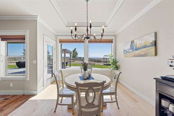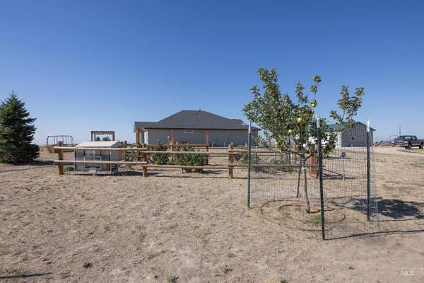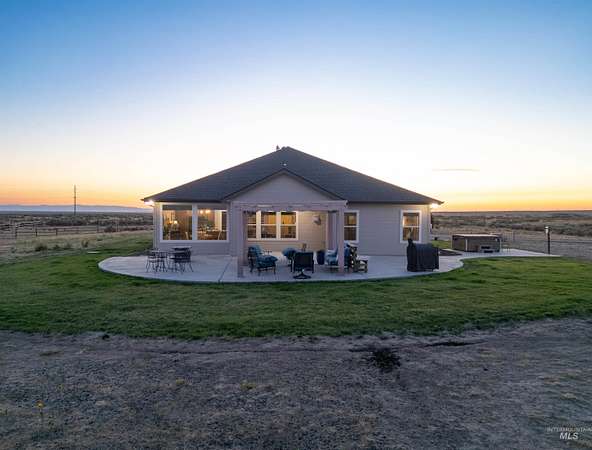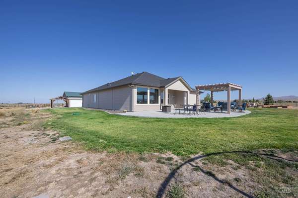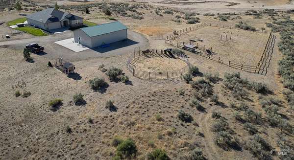 Welcome HOME to your very own sprawling estate 15 minutes from Boise in the up-and-coming community of Mayfield. This beautiful single level home sits on over 11.5 acres of rolling topography and tucked less than 2 miles off the I-84 exit. Enjoy your panoramic sunrises and sets from the shaded pergola on the large back patio or relaxing in the hot tub, surrounded by the Danskin Mountain Range This home boasts 2 large primary suites with walk in closets or for use as a private guest retreat with the split bedroom plan. Beautiful new shower in the NE suite. The tray ceilings and tall doors and windows draw your gaze up and there's a large open living area for gathering around the gas fireplace. The kitchen has ample counter space with the grand island, a large desk nook and a big walk-in pantry for plenty of storage. High quality water filtration system included. The large, insulated and heated shop can hold at least 3 more vehicles with room left for a hobbies, additional gathering space, storage or farm supplies and equipment. There's ample RV parking on the side slab and additional covered parking (or hay storage) out front with a wraparound driveway. Bring your green thumb and enjoy the raised garden beds, Medley Orchard and NEW sprinkler system. Imagine your own horses, goats, chickens and hobby farm dreams. This property has been meticulously maintained by its owners.