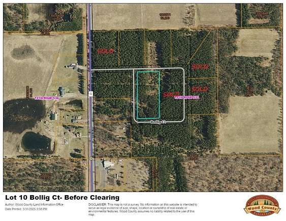 Wooded lot in Bollig Estates subdivision. Be a first to own a lot in newly created subdivision. The electric and fiber optics are available at the lot line. Wooded 2.27-acre lot with towering pines. Build your dream home or cabin or simply use as recreational property for the time being. Camping and single wide manufactured homes are allowed. Please contact Port Edwards Township zoning administrator for details. If you not interested in lot 4 you can choose a different lot available for sale in Bollig Estates- see associated docs for approved plat map. Close to Nekoosa and Rainbow Casino. Not far from Wisconsin River & Petenwell Lake- for great recreational activities. Wood County Aerial Maps reflect pictures of the woods before select clear cut just before subdivision was created.
