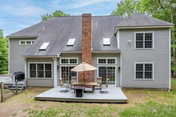 Set on over 2 private acres in a prized cul-de-sac neighborhood, this captivating Colonial offers space, comfort & exceptional potential. A gracious cathedral-ceiling foyer welcomes you into this thoughtfully designed home. The spacious cabinet-packed center island chef's kitchen with walk-in pantry & abundant prep space opens to a breathtaking sun-drenched family room with soaring ceiling & fireplace-an inviting hub perfect for everyday living & entertaining. The formal living & dining rooms offer timeless gathering spaces. Upstairs, retreat to the dreamy primary suite with sitting area, 2 walk-in closets & spa bath. A guest ensuite plus 2 addt'l bedrooms with shared bath provide room for all. Enjoy the convenience of a 3 car garage, the versatility of a 1st floor office/media room & the expansion potential awaiting in the unfinished lower level & 3rd floor. Unwind on the deck overlooking a private yard framed by serene woodlands - your own peaceful escape yet moments from everything.