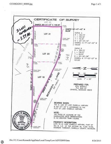Est $180/moThese 3 lots are being sold as one. Lake Isabella is a private, all sports 800 acre lake. Annual association fee lets you enjoy all the lake amenities. There is great fishing and boating fun!