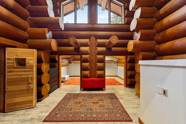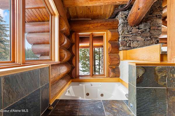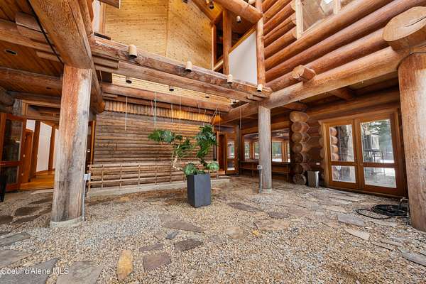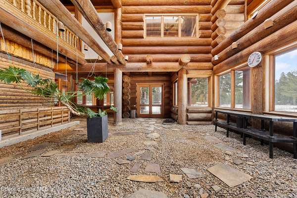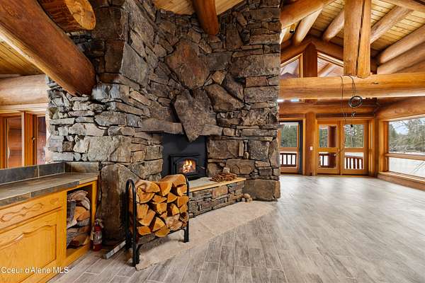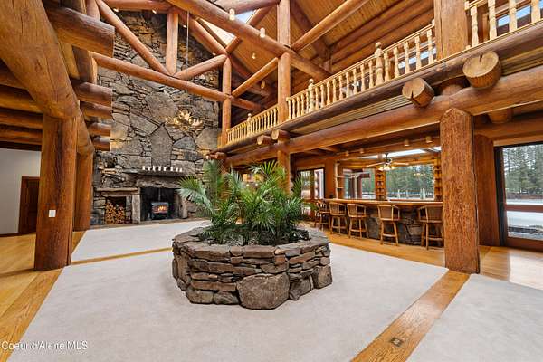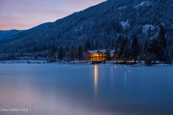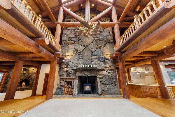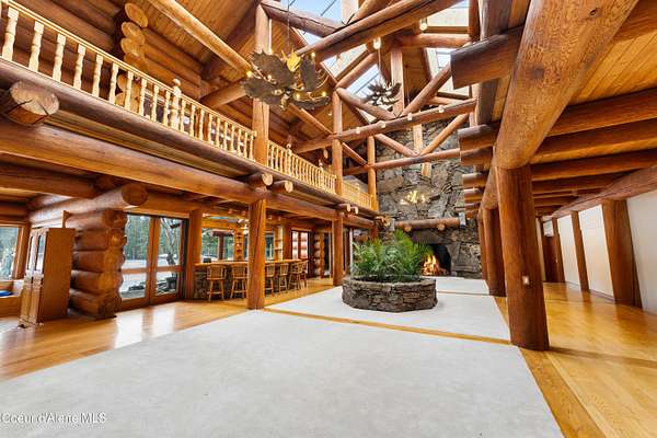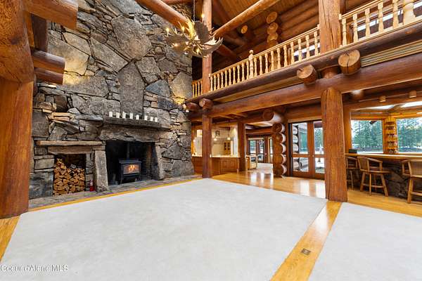 This is Big Idaho - a rare and historically significant luxury log estate offering over 21,000 sq ft (Approx 16,000 AG sq ft & 5200 BG sq ft) of handcrafted living space. Recognized as one of the most iconic log residences ever built, this legacy property is set on over 57 private acres, backing directly to National Forest land, with a year-round creek and multiple lakes throughout the property, providing exceptional privacy, scale, and natural beauty. The residence features 7 bedrooms and 10 bathrooms with soaring open-concept interiors anchored by a breathtaking 40' x 50' great room with 40-foot ceilings. Nearly 7,000 sq ft of windows and 10 skylights flood the home with natural light and frame panoramic lake, mountain, and forest views. Nine stone fireplaces, six chimneys, radiant heated floors, and massive hand-turned larch logs reflect extraordinary craftsmanship and timeless rustic elegance. The main living areas include a spacious kitchen, dining room, study, den, bar, and expansive greenhouse, thoughtfully designed for both everyday living and entertaining. Most rooms open to private decks overlooking water and wilderness, seamlessly blending indoor and outdoor living. The primary suite is a true private sanctuary, offering a 10-person sauna, walk-in shower, sunken soaking tub, and a private deck overlooking the lake. A nearly fully finished basement adds remarkable versatility with a media room, wine cellar, gym/recreation room, and abundant storage. Surrounded by abundant wildlifeincluding elk, moose, deer, and waterfowlthis secluded yet accessible estate presents a once-in-a-generation opportunity to own a historic, irreplaceable Idaho landmark. Completed in 1986, this home's lasting design provides the perfect canvas for selective modern improvements. Ideal as a private retreat, family compound, or trophy property, Big Idaho stands as a true testament to scale, craftsmanship, and enduring legacy.
