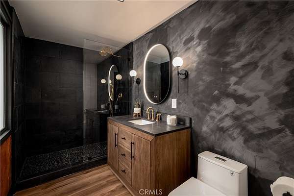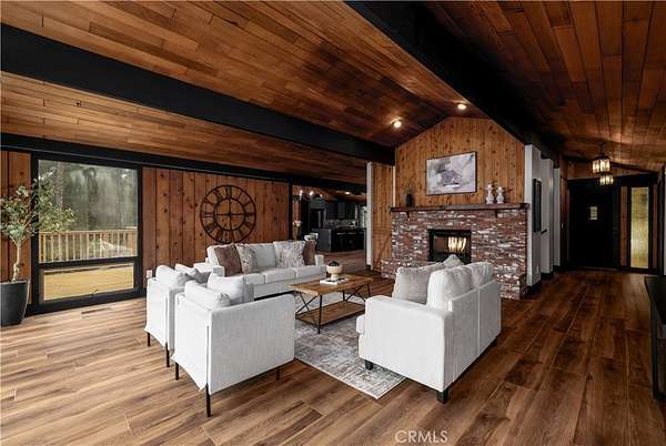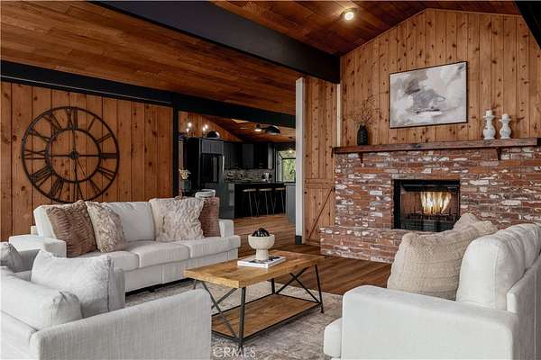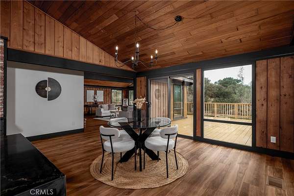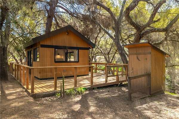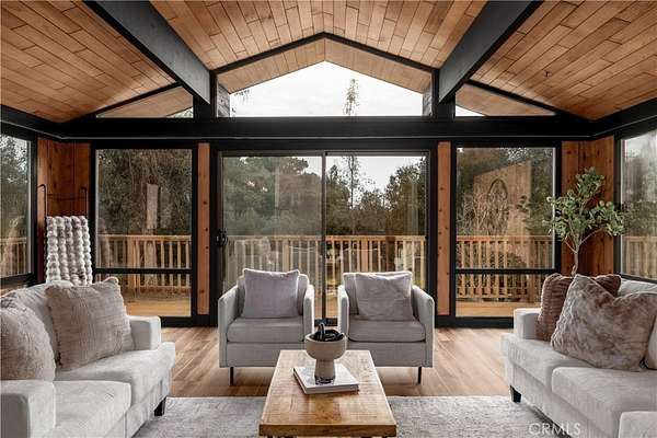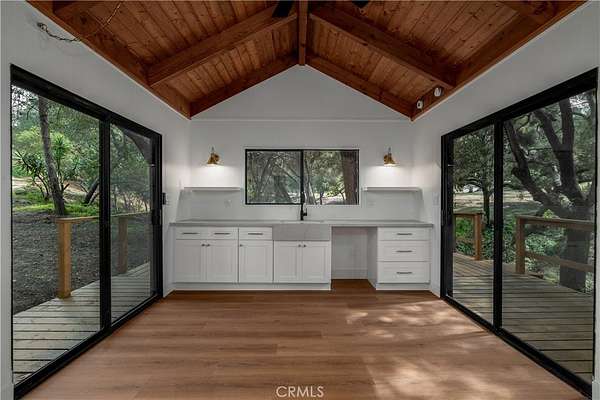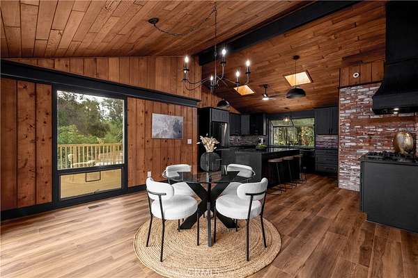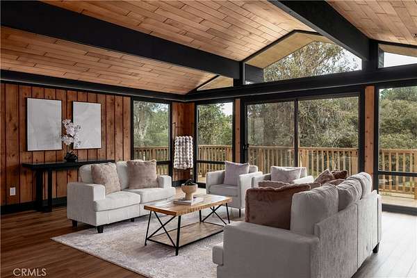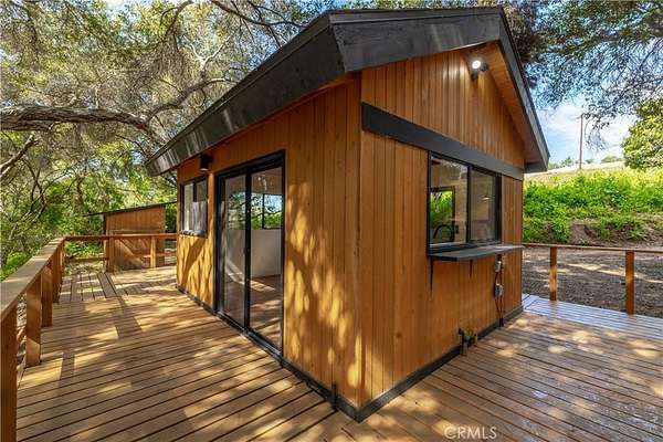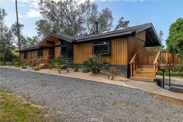 Welcome to “Patti Oaks,” a rare custom cedar estate set on 3.58 private acres where nature, craftsmanship, and modern design come together. This first-time-on-the-market property features an approx. 2,800 sq ft main residence (4 bed / 2 bath), a 1 bed / 1 bath ADU, and a detached flex retreat, all surrounded by mature oaks, a year-round stream, and a tranquil pond. The main residence has been extensively updated while preserving its character. The upper level features beautiful cedar ceilings, rich wood textures, and cove lighting, with a dramatic brick fireplace anchoring the living space. The remodeled kitchen is a centerpiece with custom cabinetry, quartz countertops, stone backsplash, new appliances, under-cabinet lighting, and a custom range hood. The guest bath includes a free-standing vanity, brass hardware, fluted tile, and limewash walls, while the primary suite is a serene retreat with floor-to-ceiling windows, a walk-in closet with built-in cabinetry, and a master bath featuring a walk-in rain shower, slate tile, free-standing vanity, and limewash walls. The Jr. ADU / Next-Gen suite boasts a white oak kitchen with quartz countertops, a bathroom with zellige tile and brass hardware, providing flexibility for multigenerational living, guests, or rental potential. Outdoor living is exceptional, with a wrap-around wood deck, mature oak groves, and a year-round stream feeding a pond with a fountain, creating a picturesque and peaceful setting. A studio/workshop with kitchenette and wrap-around deck adds versatile space for creative, office, or potential ADU use. The 3.58-acre grounds are meticulously landscaped, featuring fresh sod near the ADU, mature fruit trees, and a concrete and gravel driveway. Additional highlights include solar with battery storage, an automatic Generac generator, and epoxy-coated garage floors. Private, scenic, and full of character, Patti Oaks offers a rare opportunity to own a custom estate where nature, craftsmanship, and modern luxury finishes—including quartz, stone, zellige tile, fluted tile, slate tile, cove lighting, and built-in closet systems—come together to create an extraordinary lifestyle. Call Noah Thomason for all showings (951) 852-6408