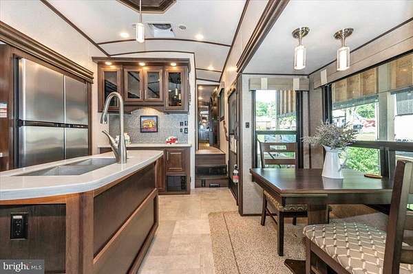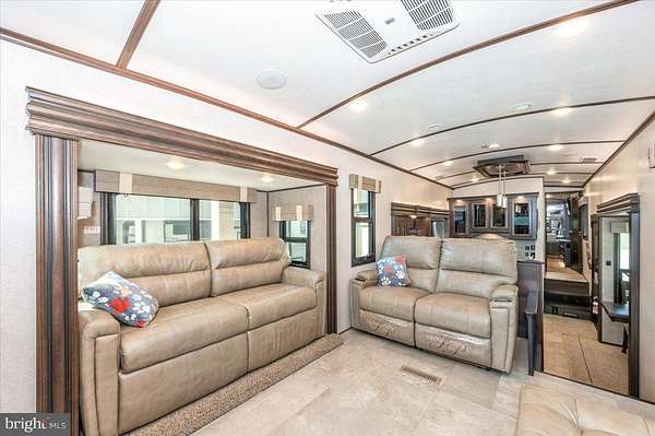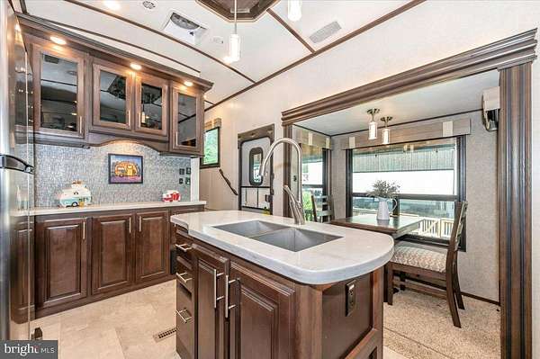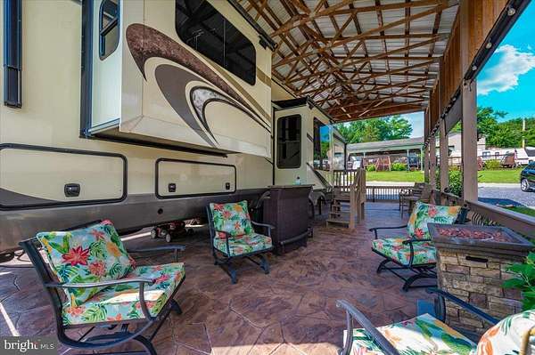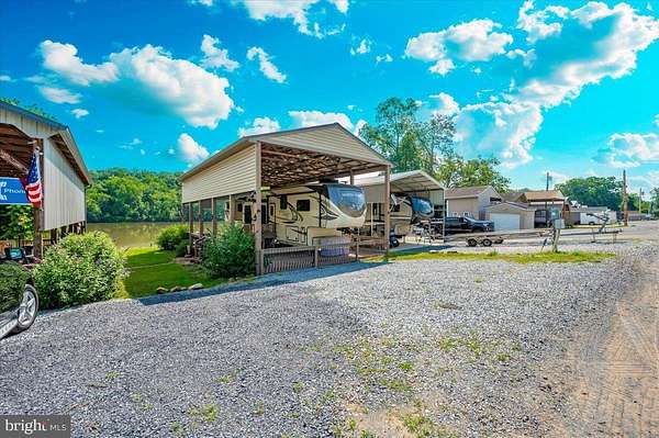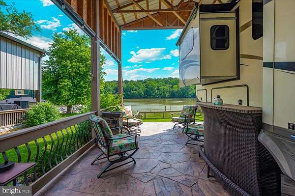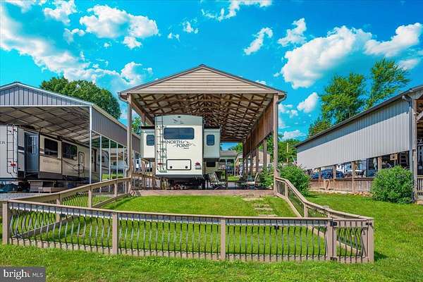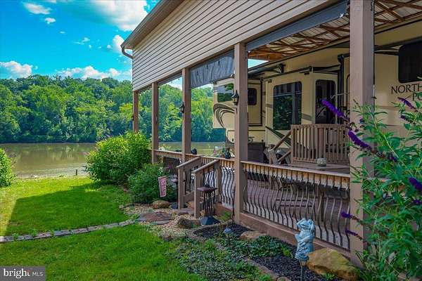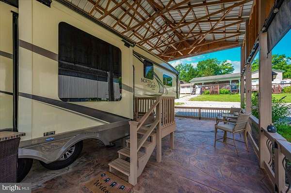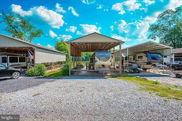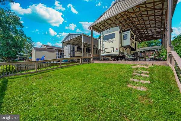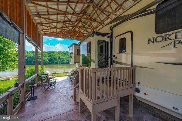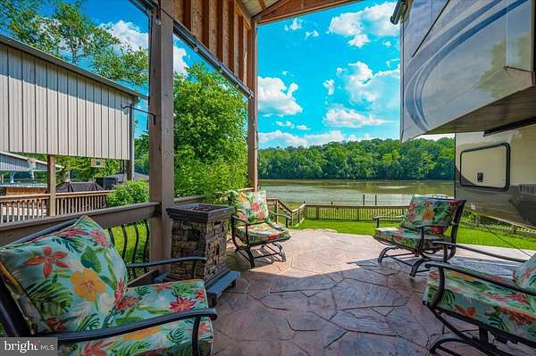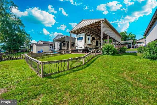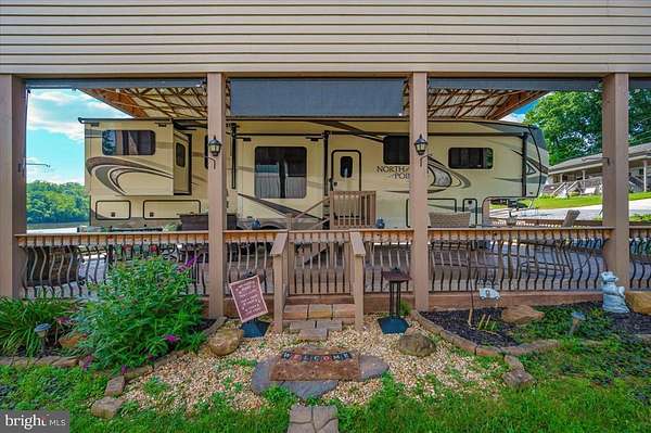 Waterfront in River Bend!!! This is your chance to own a piece of serenity. Located in gated River Bend seasonal campground (from April 1st til November 1). 100% turn key water-front property with a 2018 Joyco North Point luxury 5th wheel camper, outside TV, patio furniture/bar and a blackstone grill that all convey!!! Beautiful landscaping , partially fenced yard, enormous 24x45 pavilion with sun shades, and a stamped concrete patio. Fence is removable if needed. This truly is a must see!!! The 45 ft. Luxury Joyco camper has a bedroom equipped with a king size bed, lots of closet space, washer/dryer hook up and a TV. Living area has 3 leather couches, 2 pull out beds , and a large TV that slides into cabinet when needed so you can enjoy the picturesque views of the water. Kitchen boasts a full size refrigerator , pantry, coffee bar area with lots of storage. Annual dues are approx. $1900 annually and they include water, trash, electric, and sewer pump out, use of 3 pools, mini golf, basketball courts, tennis and horseshoes . Community also has a camp store, laundry mat, church fellowship , and a nice restaurant/bar. There are several large pavilions which are available for rent for special events as well. Don't let this one pass you by!!!
