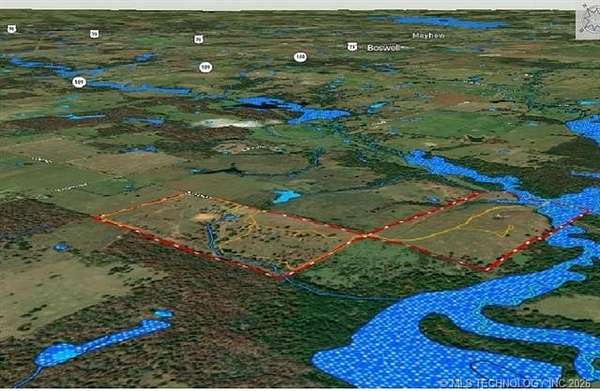 160 Acres | RV Hookups | Water & Electric | Septic system/Wildlife & Views Two adjoining 80-acre tracts just minutes from Boswell, OK, offering prime opportunity for ranching, recreation, or building. The property features two electric meters, two water wells (one confirmed working), one septic system, and two full RV hookups. Cross-fenced and includes two ponds, a water tank, and a creek that runs through part of the acreage. Native and Bermuda grass mix with varied topography and multiple build sites with panoramic views. Excellent wildlife habitat with whitetail deer, hogs, and turkey. Located approx. 6 mi from Boswell School, 35 min to Choctaw Casino & Durant amenities, 1 hr 50 min to Dallas Metroplex, and 2 hr 25 min to OKC. Perfect for a hunting ranch, homesite, or small cattle operation.