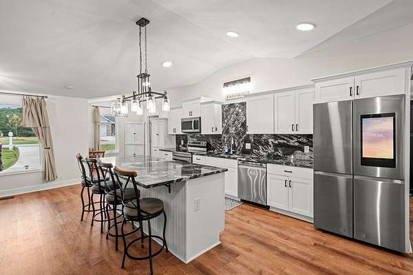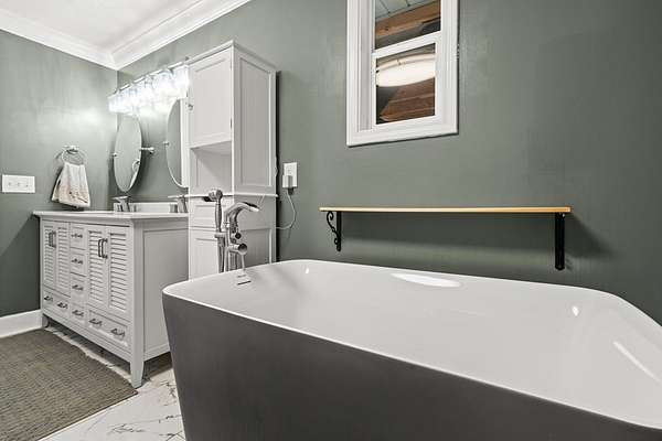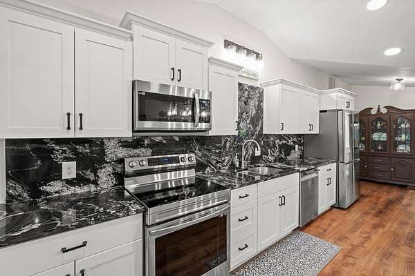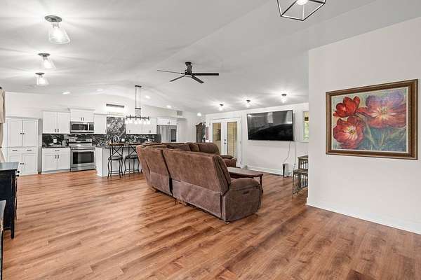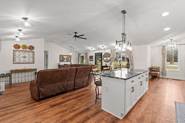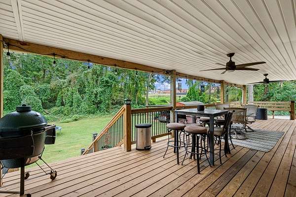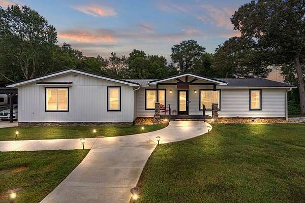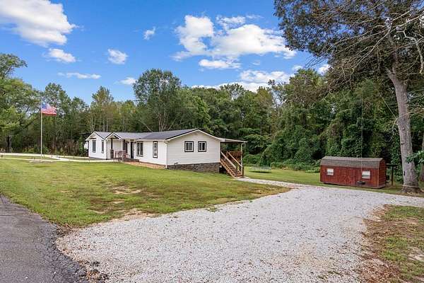 Welcome to this stunning renovated 4-bedroom, 3-bath residence, expertly blending modern farmhouse style with warm, comfortable elegance. Nestled on 2+-acres, this home features a sleek metal roof and an inviting covered front porch with stone columns. Having undergone a comprehensive renovation two years ago, this home showcases an open and airy layout with an abundance of natural light and tasteful finishes throughout. The oversized carport provides ample space for vehicles, an RV, or additional storage. The primary retreat features a spacious marble-tiled shower with dual shower heads, a large modern free-style soaking tub, and dual vanities. With spacious closets throughout. Step into the beautifully renovated kitchen, which is sure to impress! Featuring sleek white shaker cabinets, striking black granite countertops, a full-height backsplash with stainless steel appliances, this space seamlessly blends elegance with functionality. The built-in microwave, smooth-top range, and double-basin undermount sink make cooking a breeze, while modern lighting and stylish hardware add a sophisticated touch. The open layout flows seamlessly into the dining area, making it ideal for entertaining or hosting family gatherings. With its rich hardwood-style flooring and thoughtfully designed layout, this kitchen is both a showstopper and a chef's dream. You will find a large walk-in laundry room. Expansive Covered Porch offering Outdoor Living at Its Finest! Enjoy year-round relaxation and entertaining on this stunning covered back porch, designed for comfort and connection with nature. This expansive space features beautiful natural wood decking, ceiling fans for a cool breeze, and ample room for dining and lounging. With serene views of a private, tree-lined backyard, it's the perfect setting for morning coffee, evening gatherings, or weekend barbecues. A built-in bench offers additional seating. Whether you're hosting a crowd or simply enjoying a quiet evening, this outdoor retreat is sure to be a favorite spot in the home. Enjoy listening to the band from Bowdon High School or a Friday night game. Ideally located just minutes from local shops, schools, and amenities, this move-in-ready gem is the one to view today. Storage building remains.