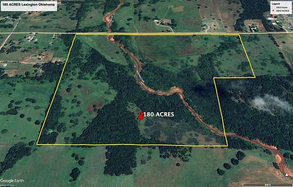 Prime Oklahoma Hunting & Recreational Land! Discover 180 MOL acres of true Oklahoma countryside. An impressive mix of mature timber, open grazing land, 1 pond and a spring-fed creek that winds through the property. This diverse landscape creates exceptional habitat for deer, turkey, and other native wildlife, making it a standout hunting and recreational retreat.The heavily wooded areas offer natural cover and privacy, while the open pastures supply tillable ground with native and bermuda grass, provide ample space for cattle, horses, or future ranch development. The spring-fed creek running through the fenced property adds both beauty and functionality, drawing wildlife year-round and offering a serene backdrop for camping, ATV riding, or building a secluded cabin or home. Whether you're an avid outdoorsman, a rancher looking to expand, or someone seeking a private getaway with investment potential, this Lexington property delivers the perfect blend of recreation and utility. Only 45 minutes from Oklahoma City and