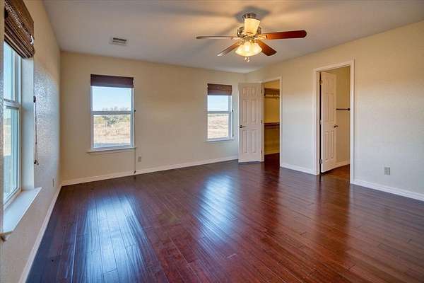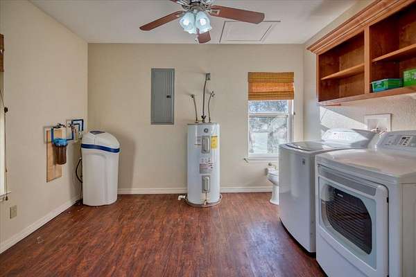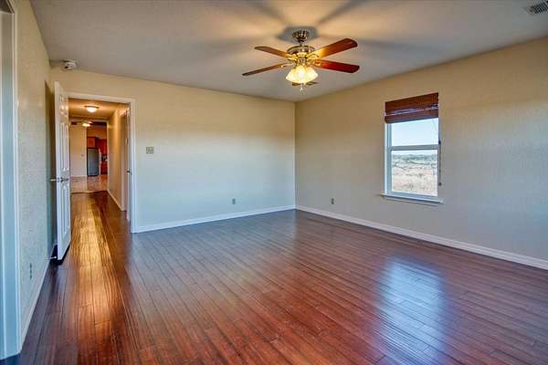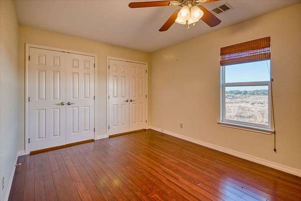 Located along paved FM 1311 in the Calf Creek community, this 132.8 acre McCulloch County ranch is marked by Texas Historical Marker #4815, sharing the story of Jim Bowie and the Battle of Calf Creek (1831). Today, the property offers a rare blend of Texas heritage and turn-key ranch functionality, well suited for cattle, hunting, fishing, or a quiet weekend retreat. At the center of the ranch is a 3 bedroom, 2.5 bath ranch-style barndominium (2,106 sq ft) featuring an open-concept layout designed for comfortable country living. The kitchen is spacious and functional with stainless appliances, and it flows seamlessly into the main living area highlighted by reclaimed wood ceilings, long leaf pine floors, and a wood-burning stove. The bedrooms are generously sized, including a private primary suite with an ensuite tub/shower combo. Two additional guest bedrooms share a full bath. Other features include double-pane, vacuum-sealed windows/doors, ceiling fans throughout, and a large utility room with washer/dryer hookups, water softener and filtration, and an extra "just-in-case" toilet because ranch living is all about practicality. Improvements include a 50x30 fully insulated metal shop with roll-up doors, offering excellent workspace and storage, along with covered parking and a deer skinning station. The land consists of productive Central Texas rangeland with portions of previously cultivated ground that have reverted to native pasture. The seller treated the mesquite and prickly pear last summer. Two stock ponds, one stocked with bass and perch, mostly new fencing, and a practical set of cattle working pens are already in place. Wildlife is excellent in the area, with whitetail deer, turkey, quail, hogs, and seasonal ducks. Water is supplied by a private well (estimated 7 GPM).