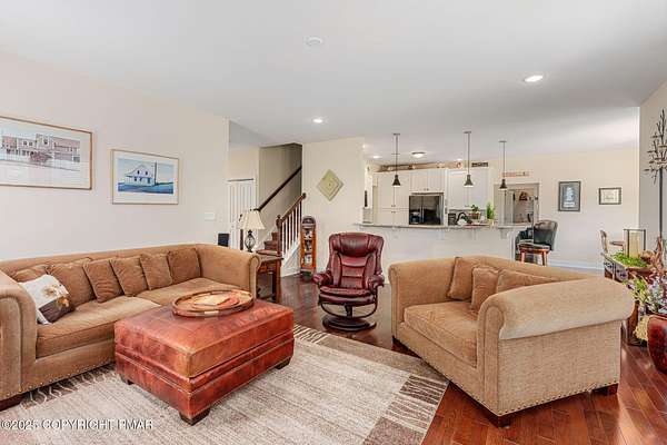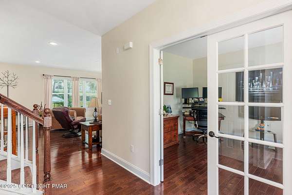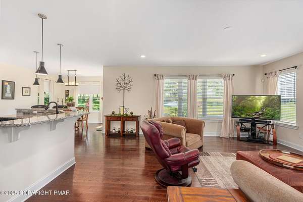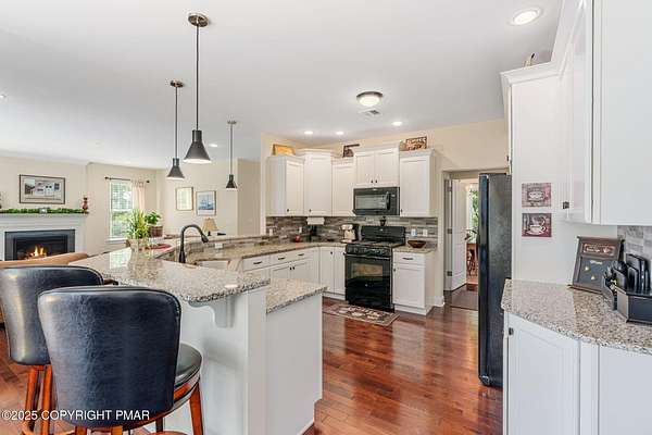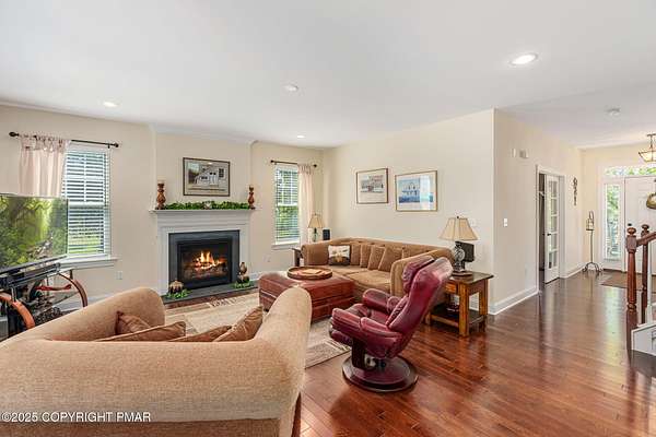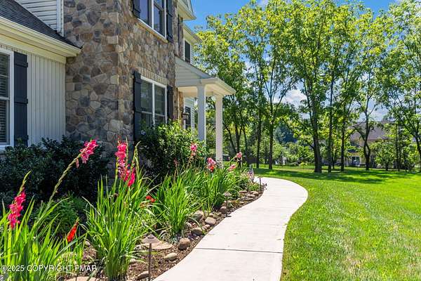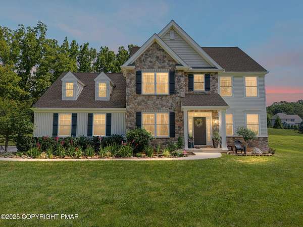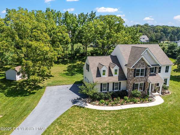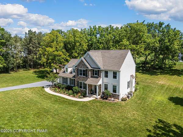 Built in 2018 and meticulously maintained, this stunning home feels like new and is move-in ready. Set back from the road on a beautifully landscaped 1.54 acre lot, it offers space, comfort, and modern style in every corner. Step into a spacious foyer that welcomes you with warmth and charm. A formal dining room and a flexible space behind French doors-ideal as a home office or formal living room. The inviting family room features a cozy propane fireplace and rich hardwood floors that flow throughout the first floor. The kitchen is a dream, boasting granite countertops, a stacked stone backsplash, modern appliances, and generous prep space. A sunny breakfast area opens to a private rear patio-perfect for morning coffee or evening relaxation. A powder room and laundry room complete the main level. Upstairs, you'll find four generously sized bedrooms, two full baths, and a versatile 20' x 15' finished bonus room above the garage-perfect as a playroom, guest suite, or media space. Additional features include: Propane heat (2-zoned), fireplace, and range/oven. Central A/C. Pella windows and sliding door. Full basement and 2-car side-entry garage. Storage shed. Owners have repainted the interior and upgraded door hardware throughout. This home combines modern finishes with peaceful surroundings-don't miss the chance to make it yours!