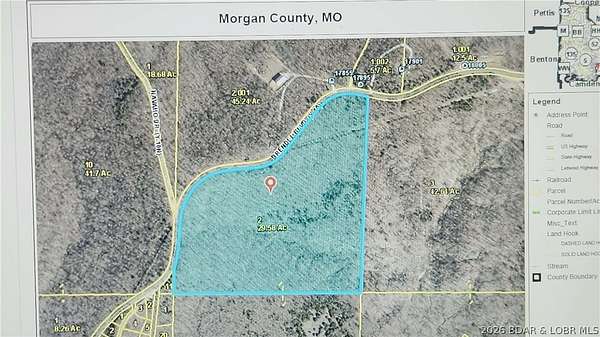 Est $3,412/mo87-acre parcel with lakefront lot ready for your getaway Located in Boque Bay Cove off the Gravois arm of the Lake of the Ozarks, it's a great location for hunting. The main parcel sits along Brendel Blvd, just off Missouri Hwy W. Easy access with paved roads to the main parcel and well-maintained gravel to the Lakefront lot-mostly rolling wooded land Make this your private estate.