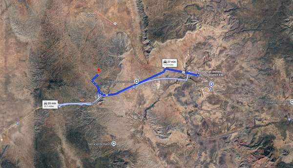Dirt road from Route 66. High and dry, not in the floodplain.