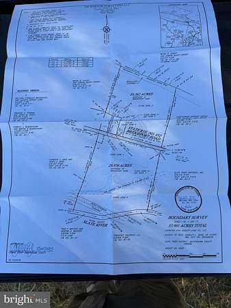 The Slate River farm has 1,043 feet of road frontage on bridgeport rd, healthy pasture, and 1,165 feet of SLATE RIVER FRONTAGE forming the entire back boundary. Formerly used for cattle all of the open land is fenced with trails winding throughout the hardwoods for recreational activities and hunting. The slate river is a steady flowing tributary that runs right into the James River at Bremo Bluff just down the road. This is a very unique tract with an amazing shape that has 3 different perc sites, no restrictions, and plenty of peace and quiet. I saw some wood ducks flying along the river, deer, and I'm sure turkey are around. Give me a shout if this is something you'd be interested in seeing. 45 mins from Charlottesville. This property is wonderful for someone looking to start a small farm, have a place to recreate, build a house, and many other options. Two new gravel entrances have recently been placed on the west side where the hay lot is and one on the east side of the property. No gates are closed all gates are open.