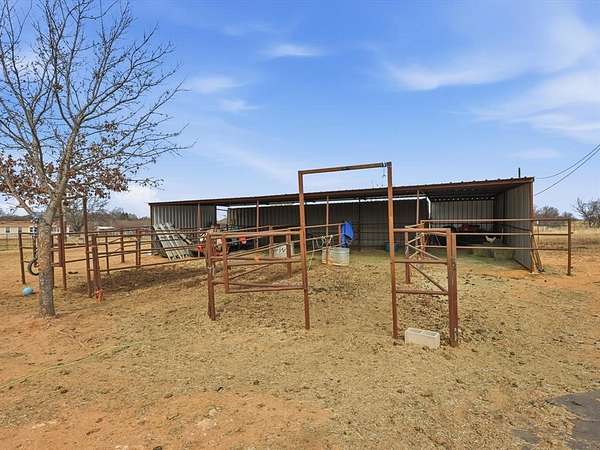 You and your insurance provider will LOVE the metal roof!! Inside, the home features 3 bedrooms and 2.5 bathrooms with a flexible, ideal layout to finish the garage (at sellers expenses). There is plenty of space for a private home office, dual workstations, or a quiet study, allowing you to comfortably work from home while keeping separation from the main living areas. Endless options to add additional bedrooms, square footage or build another primary home and rent the preexisting. Water is plentiful with an abundance of well water, supported by a 3,000-gallon holding tank, providing reliability and peace of mind. The property also offers an ample amount of storage, including horse stalls and livestock-ready facilities, perfectly suited for horses, cattle, goats, chickens, all livestock welcome. All of this is wrapped in serene Texas country living with room to roam, grow, and breathe. Whether you're building a homestead, running a business, unmatched freedom, versatility, and opportunity. Come and enjoy your own piece on Texas dream!