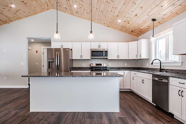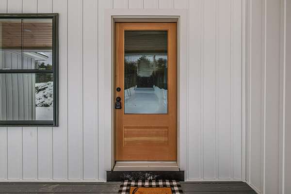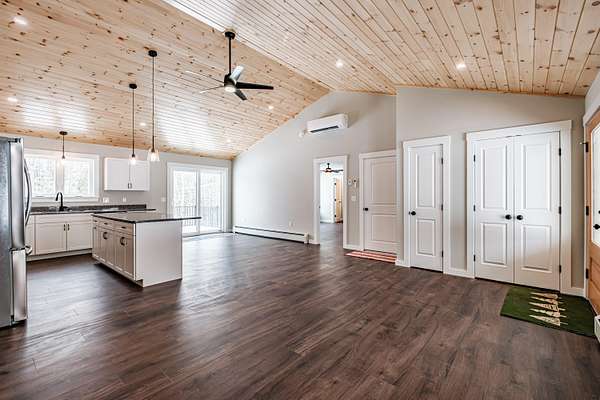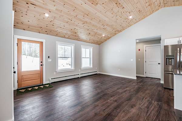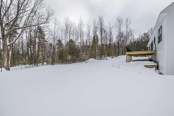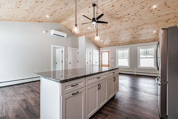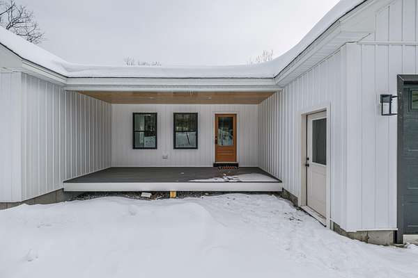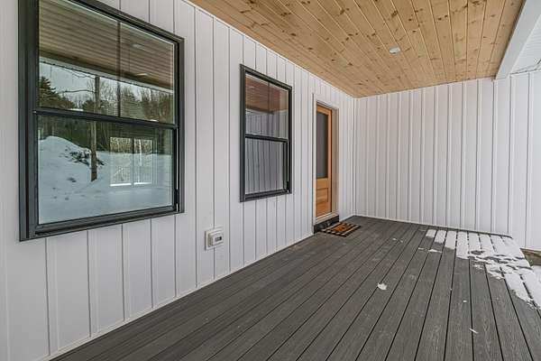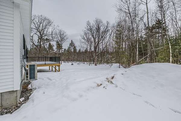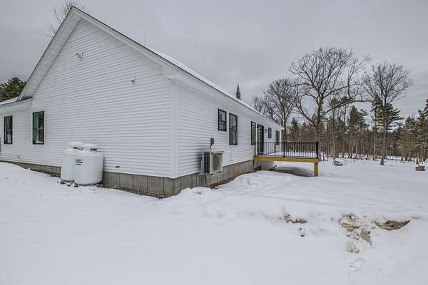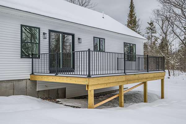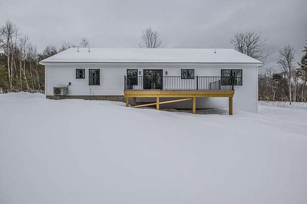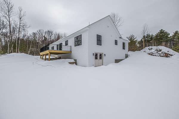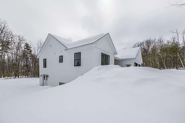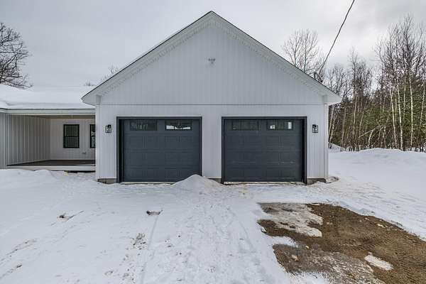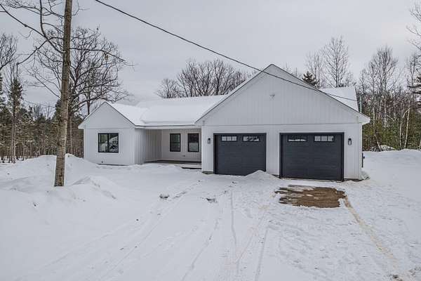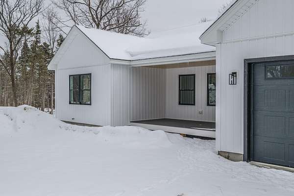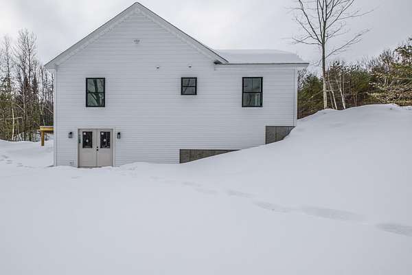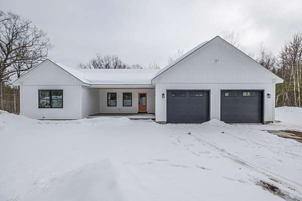 Welcome to 35 Farms Edge Road, where stylish design blends seamlessly with peaceful privacy and everyday convenience. This stunning new home offers 3-bedrooms, 2-full bathrooms and is perfectly situated on 3 private acres at the end of a dead-end, private road. This lovely ranch features luxury upgrades including black windows and doors, no-maintenance composite decking, a covered front porch with a modern pine ceiling and an inviting open-concept kitchen, living and dining area highlighted by soaring cathedral pine ceilings. The kitchen is beautifully appointed with granite countertops, stainless steel appliances, an oversized island and abundant cabinetry. A sliding glass door fills the space with natural light and provides access to the expansive back deck overlooking a private backyard, perfect for relaxing or entertaining. The primary suite offers a generous walk-in closet and a private ensuite bathroom featuring a custom tile shower and granite double-vanity sinks. Two additional bedrooms and a full bathroom complete the main level, while the full daylight walkout basement offers excellent potential to be finished for additional living space if desired. Thoughtfully designed for both comfort and efficiency, the home also includes first-floor laundry and an attached oversized two-car garage, offering easy and convenient single-level living. Energy efficient mini-splits/heat pumps provide A/C and heat for maximum comfort in any weather. Conveniently located less than 10-minutes to downtown Bridgton and the Pleasant Mountain Ski Area, 20-minutes to the Naples Causeway or 30-minutes to North Conway, NH; enjoy close proximity to shopping, dining, golfing, lakes/beaches, skiing, hiking and more!