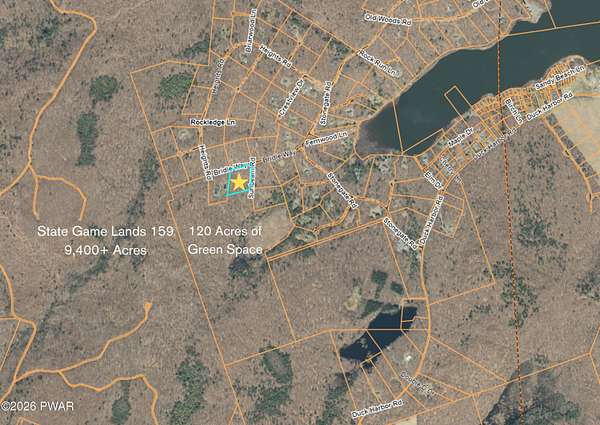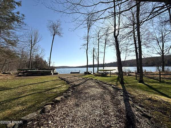 Gated community! From Honesdale: Take 191 N about 10 miles. Left onto 371. First right onto Duck Harbor Road. Continue about 2 miles to Stonegate Road. Once inside the gate, follow Stonegate to left on Bridle Way.