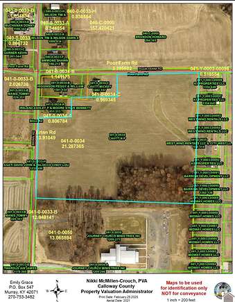 From 12th & Main in Murray, travel North on 12th Street/Highway 641 North for approximately 2.5 miles. Turn Left onto Poor Farm Road. Travel approximately 0.9 miles. Property will be on your left, just before you reach Brinn Road.
