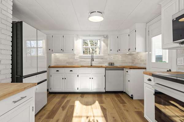 Lovingly restored and updated 1952 cape located in desirable New Harbor with frontage on the Ice Pond! Home features cozy, light filled family room with working fireplace, which steps out onto oversized deck where you can sit and enjoy the beautiful and peaceful back yard. Path leads down to the ice pond, where kayaking or skating awaits your arrival. Once you are back inside, there are two bedrooms and two full baths all updated. New appliances, counter tops as well as over sized on demand generator. Beautiful wood flooring, custom window treatments and so much more. On top of all this, you will discover a new studio apartment off the back of the garage which current owner has offered on Air B&B. One bedroom, custom bath and kitchenette with private entry. Two car garage with washer and dryer on first floor. Beautiful neighborhood nearl all the Pemaquid Peninsula has to offer and lovingly cared for landscaping. Move in condition, make this your special property in Mid Coast Maine. Extensive updating has been done. List available on MLS of all updates and repairs. Includes updating electrical and new roof etc etc.