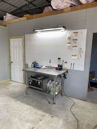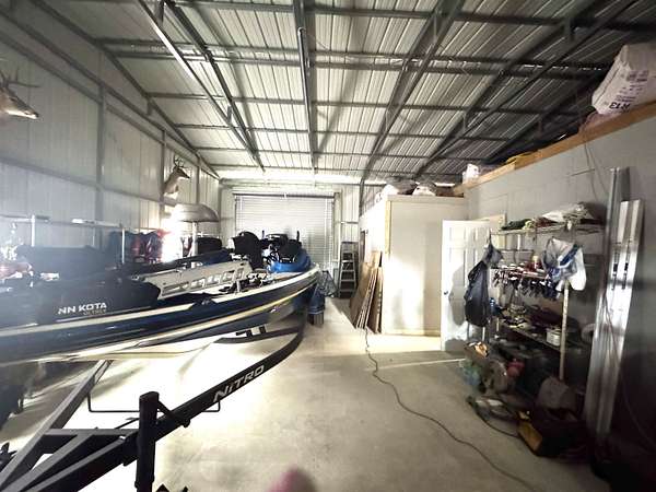 Experience lake living at its best with this brand-new barndo situated on 3 scenic acres with direct water access to Lake Sam Rayburn. Designed with both recreation and relaxation in mind, this property offers the perfect blend of comfort and functionality. The 660 sq ft garage goes beyond storage, featuring a custom fishing lure station and ample space for your boat, ATVs, and lake gear. Inside, you'll find 9-foot ceilings, durable concrete floors, recessed lighting, and a modern kitchen complete with island and new appliances. The open-concept layout creates an inviting space for entertaining or unwinding after a day on the water. Two 12x30 covered carports provide additional protection from the elements. Conveniently located just minutes from Powell Park, this property is ideal as a weekend getaway, full-time residence, or income-producing rental opportunity.