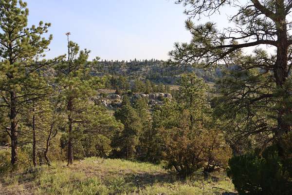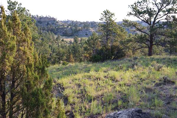 The land features a striking blend of rimrock walls, pine-covered ridges, and native grasslands interspersed with brush-filled draws and seasonal runoff channels. These natural features provide both scenic character and strong habitat for elk, mule deer, whitetail, antelope, and upland game birds. Game cameras have captured consistent wildlife presence throughout the year, confirming the ranch’s reliable food, water, and cover sources.