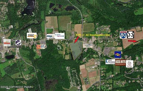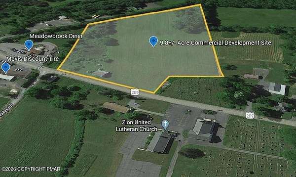 Est $4,345/moThis almost 10-acre site is clear and level. The 500+ feet of road frontage on high traffic Rt 209 allow for great visibility and access. The general commercial zoning allows a wide variety of uses for a potential developer. Across from Mavis Tire, and close to many retail and medical buildings. Permitted Uses include Retail development, Restaurant, Convenience / Service station, senior housing, office, and vehicle-related service/sales. The other 2 available lots are 2.5+/- Ac and 10.5+/- Acres.