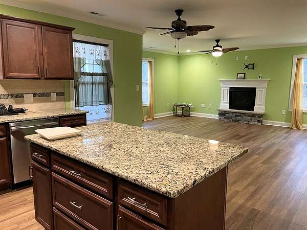 Come see this attractive custom home, built in 2019, on 2 acres in Brunswick County VA. When you step through the front door you immediately notice the open floor plan. From the large living room with a decorative gas log fireplace to the open kitchen with convenient Island. The kitchen is beautifully finished with granite countertops and stainless appliances. Both the kitchen and living room have plenty of windows for natural light. Off the kitchen is a large one car garage with plenty of storage space as well. Both bedrooms are very spacious with large walk-in closets. The primary bedroom bath is very large as well with a walk-in shower. In the hallway you find the laundry room with multiple cabinets for additional storage. Outside, the 2-acre parcel includes a large storage shed and a gravel drive, offering flexibility for hobbies, equipment, or future plans. The overall layout feels warm, functional, and easy to live in--a home designed for real life.
